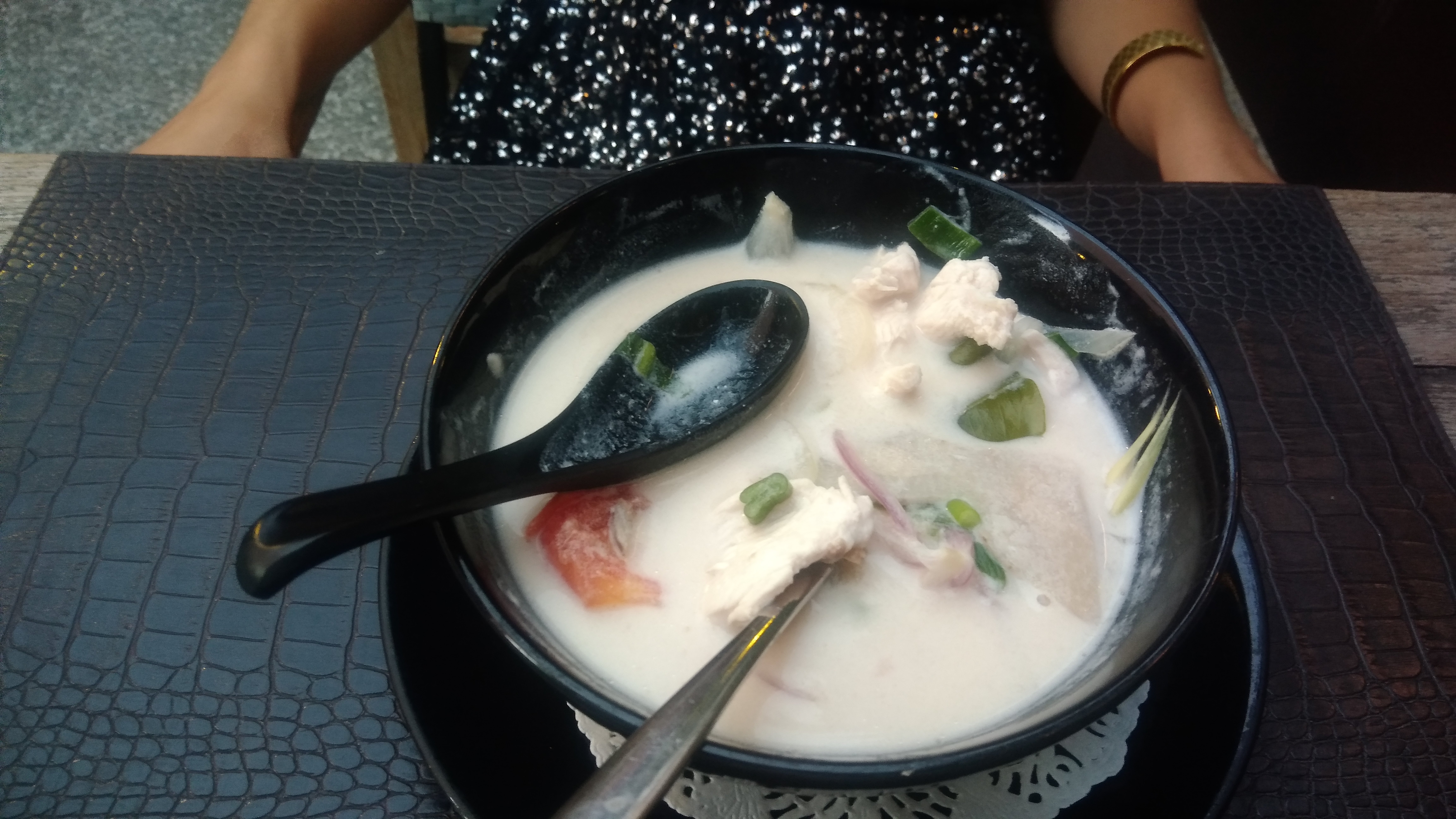 Parfait ! Je n'ai jamais mangé Thaï aussi bon !! Nous avons passé une superbe soirée, nous sommes venus un vendredi soir ,les serveuses sont à vos petits soins et la cuisine est irréprochable, très bonne. Nous étions 4 et avons pris des nems et plateau à partager au top ( pas du tout gras ) poulet citronnelle curry rouge délicieux, poulet ail et poivre, poulet caramel et canard au cajou, tous ces plats étaient vraiment très bon. Il e tarde de revenir pour gouter votre soupe poulet coco ;) Le décor est très joli et raffiné, on à l'impression d'être du voyage Merci et à très bientôt