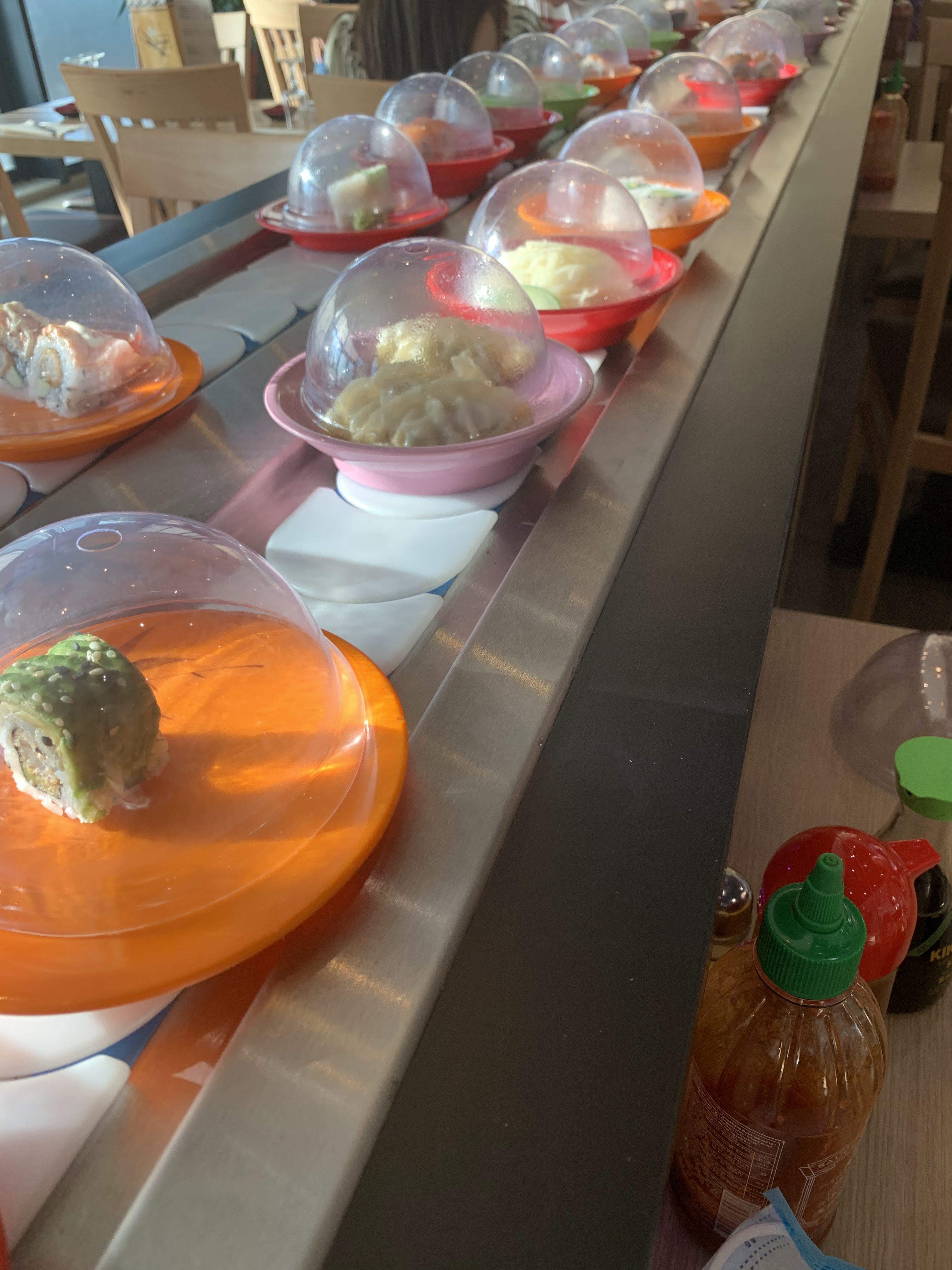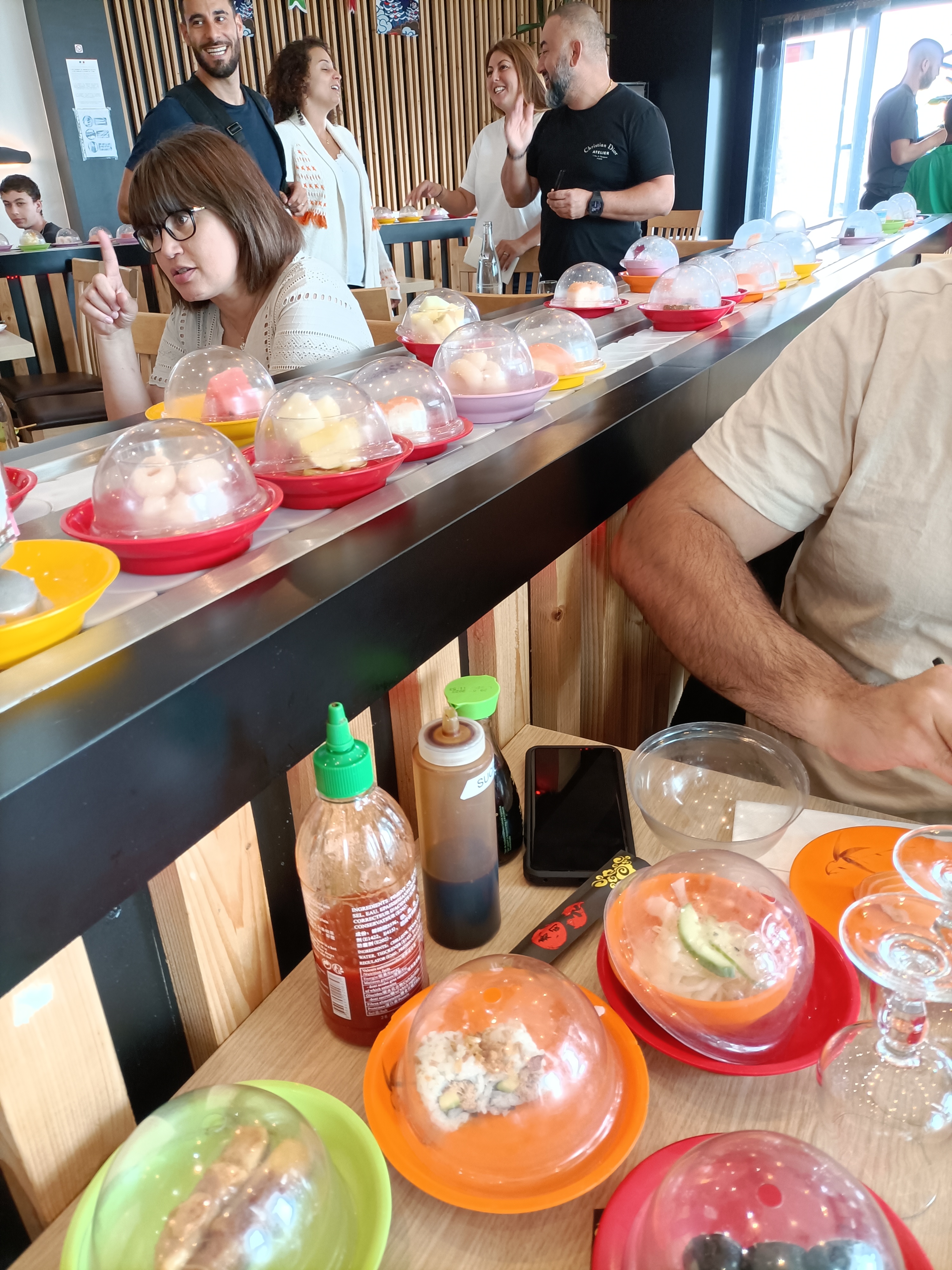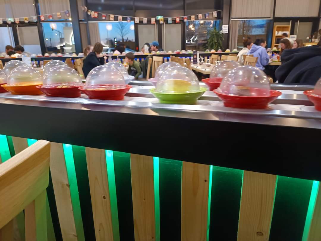 Super sympa de voir les plats passer devant nous et pouvoir choisir sur le tapis roulant ce que l on veut