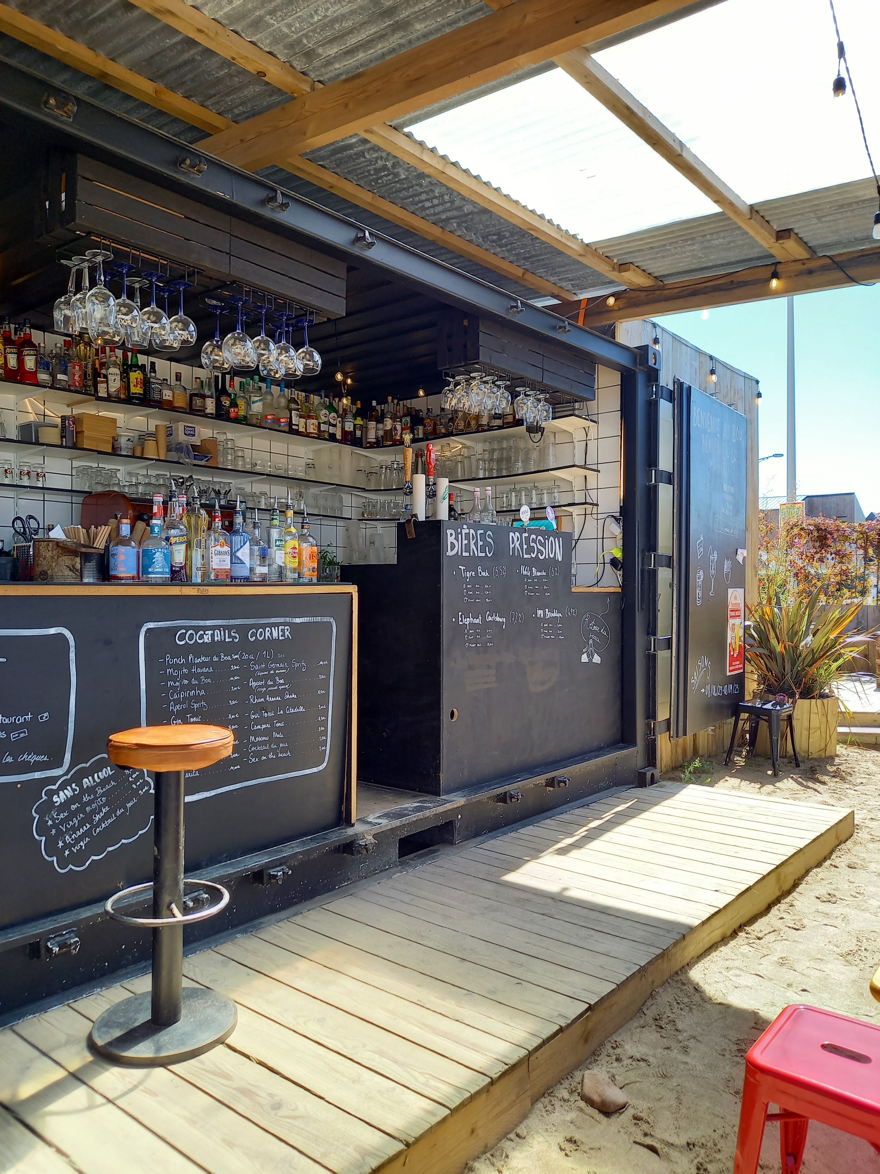 Bar fait avec des anciens containers, c'est cool avec des meubles en bois. Endroit sympa pour boire un coup après une balade à la plage. Petit snacking et dessert sympa. Attention, il faut aller commander au bar.