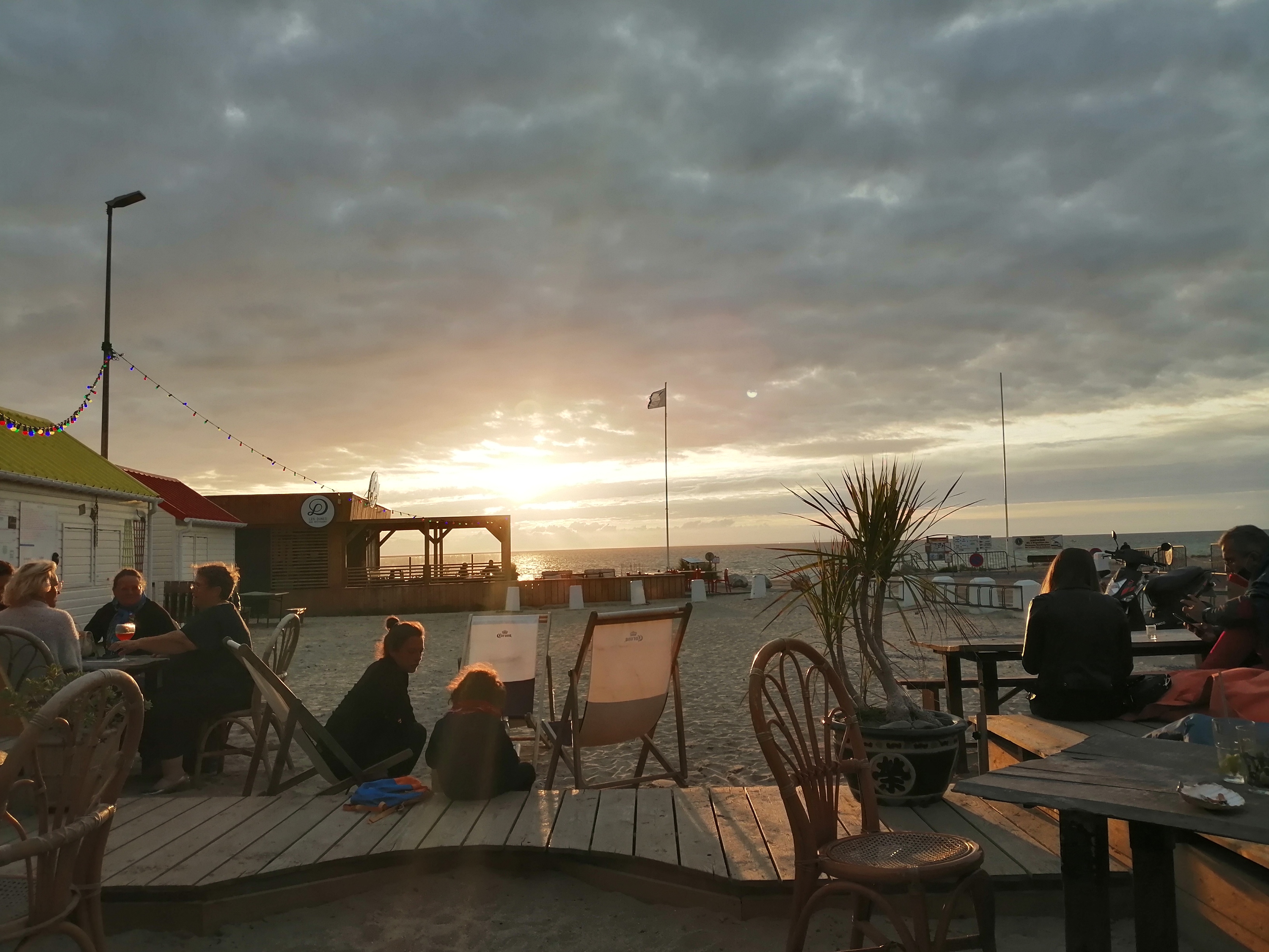 Les pieds dans le sable, vue sur la mer, concerts de temps en temps. Le coucher de soleil sur Jersey est immanquable.
