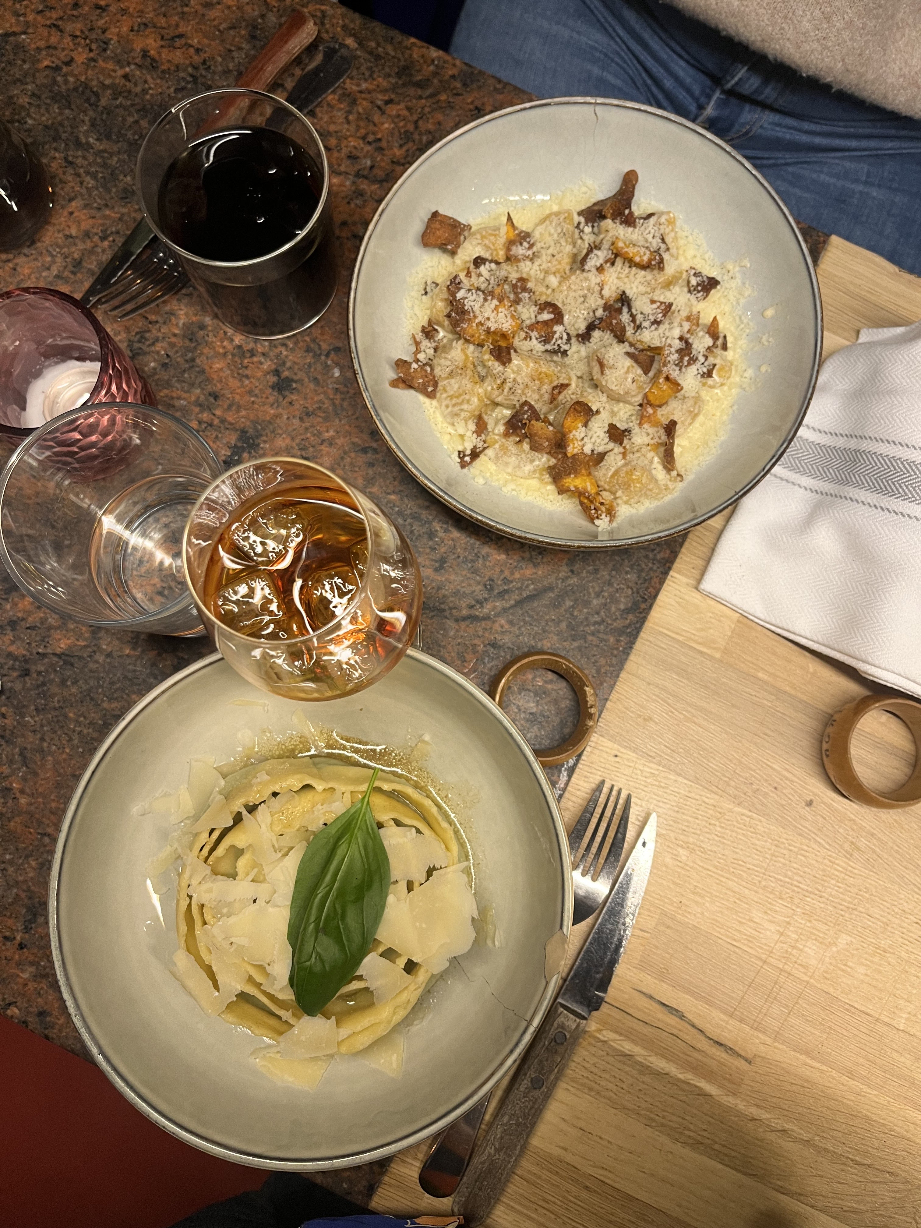 Des pâtes merveilleusement fraîches comme en Italie, réconfortantes, texture idéale. Je demande un cours avec le maître pasta !
