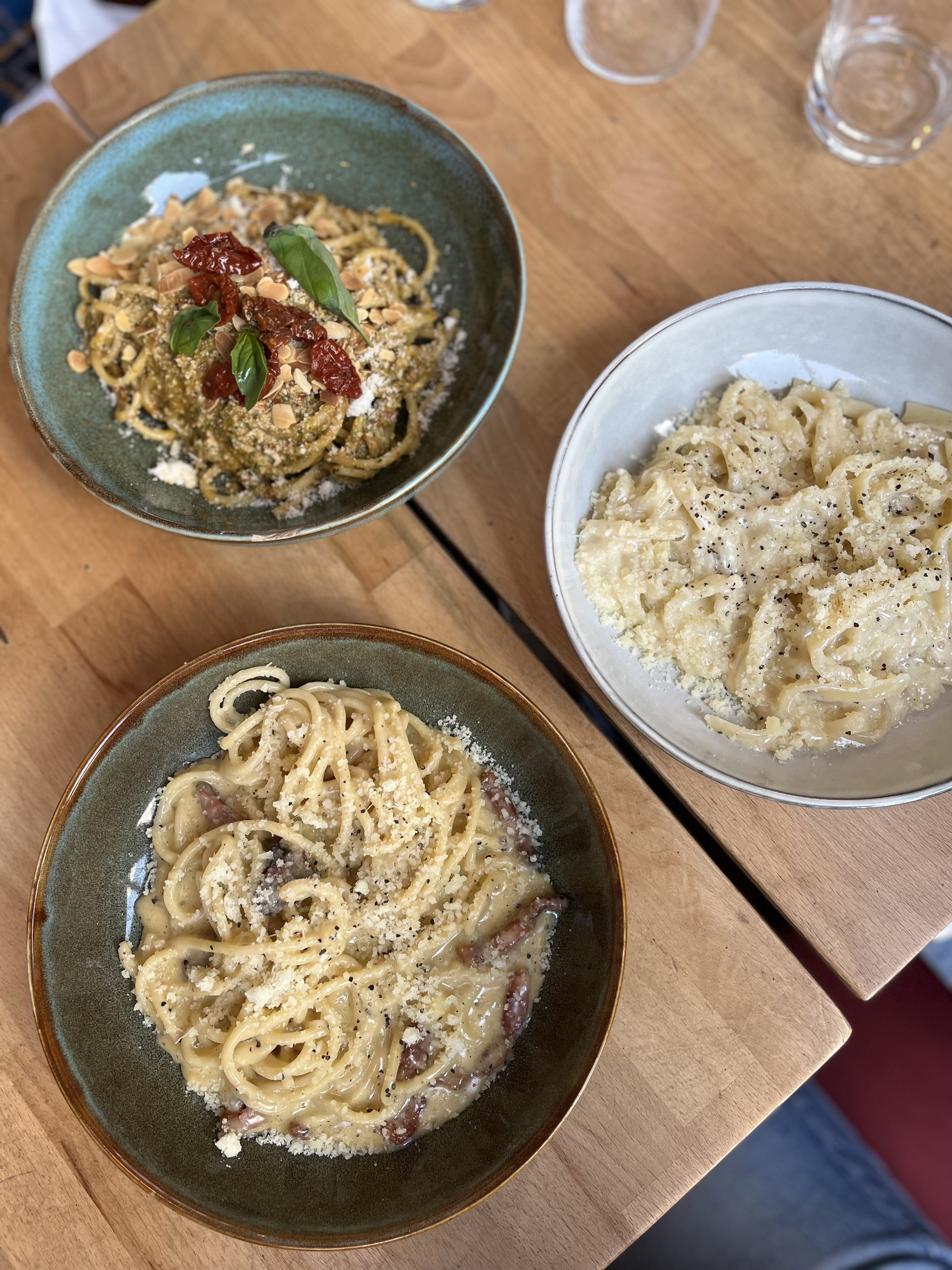 Déjeuner entre copains ce dimanche midi, on a tous pris des pâtes et on a tous adoré. Les plats étaient délicieux, le cadre super agréable et le service super sympa. On reviendra avec grand plaisir.