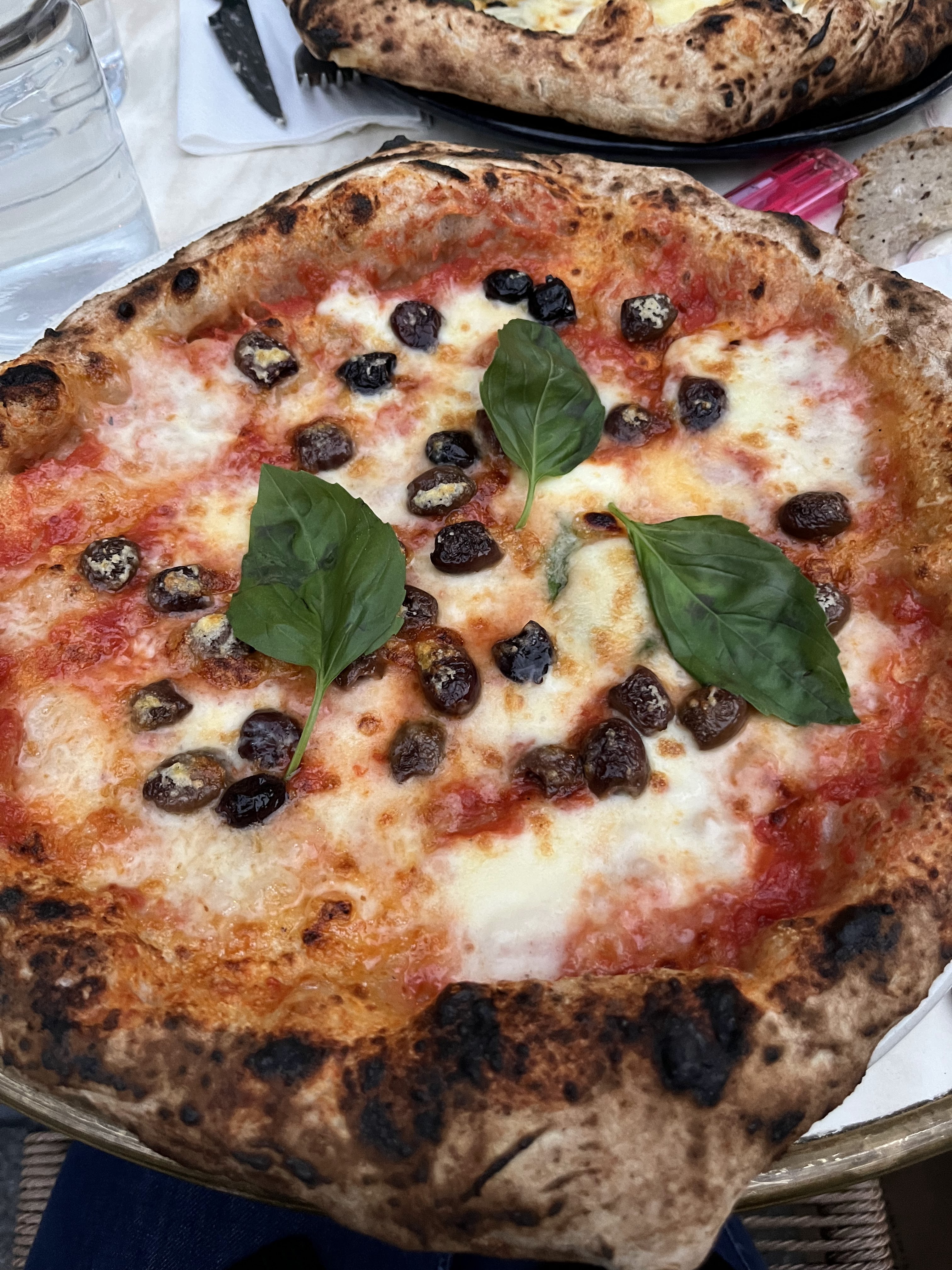 Très bonnes pâtes. Je n’ai pas pris de pizza mais elles faisaient envie, cuites juste devant nous dans un four traditionnel.