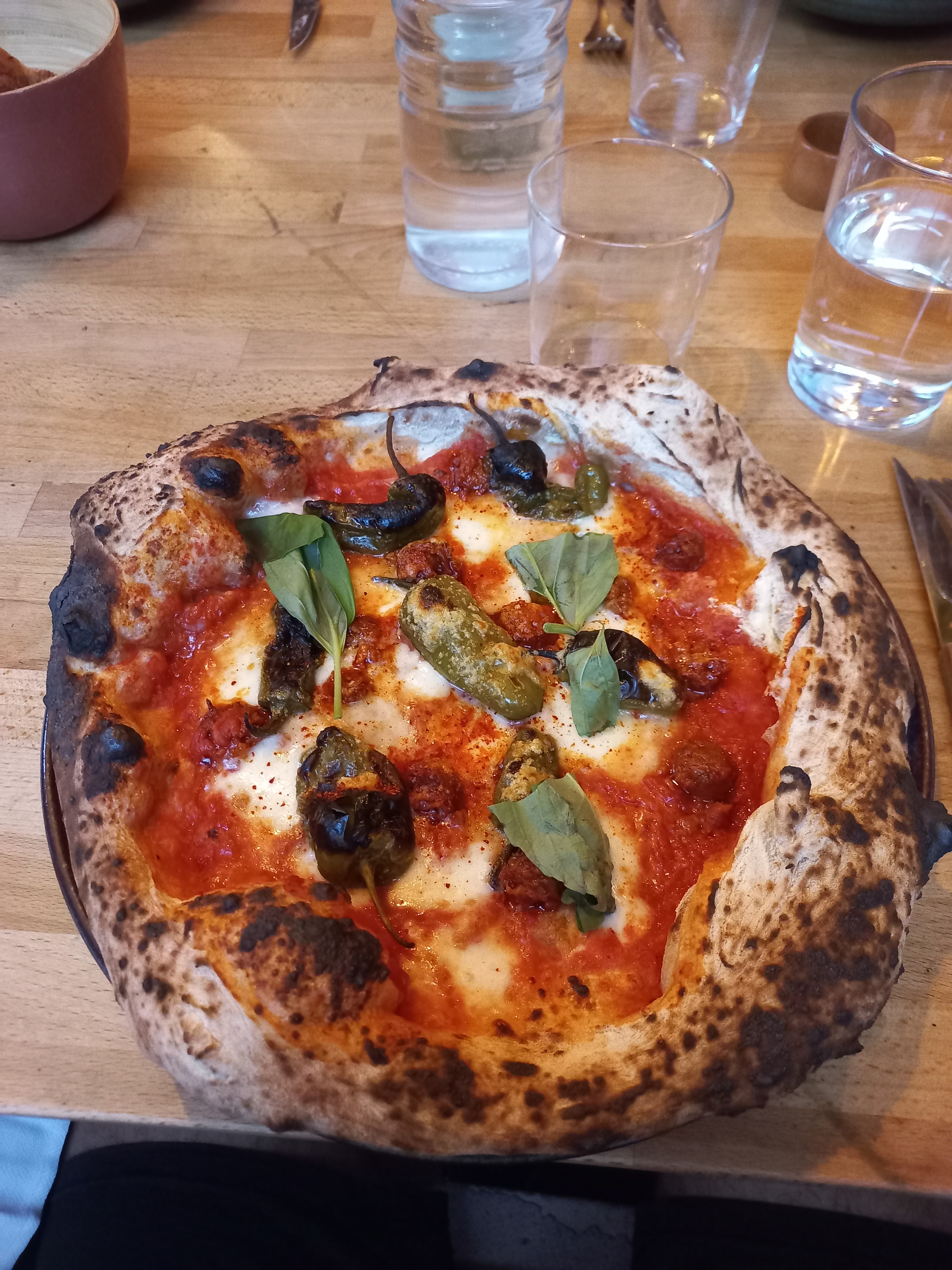 Pizzas aérées et digestes, ingrédients odorants et qui sont bons, ambiance sympa où aucun serveur ne met la pression pour passer au dessert ou pour quitter la table, vin au tarif plaisant. Je ne vois pas ce que je pourrai noter de négatif. Même la serveuse à la temps de répondre à nos questions ou de bavarder un peu alors qu'on voit qu'elle a à faire. Super adresse; je recommande sans hésiter. Attention, plutôt végé friendly car les plats avec viande sont minoritaires dans la carte.