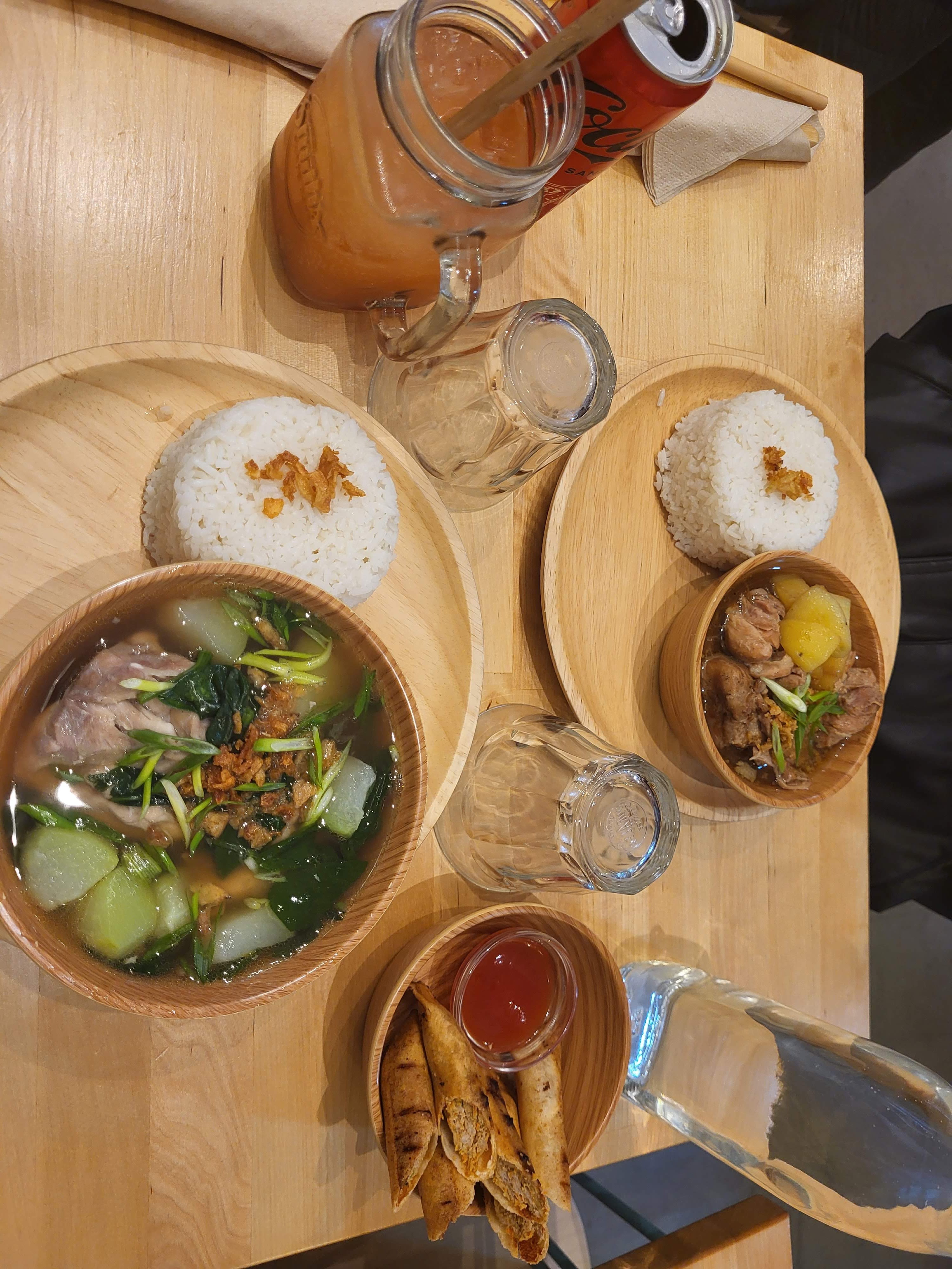 La nourriture était médiocre. Je m'attendais à plus de plats philippins disponibles ici, mais les choix étaient assez limités. Le service était excellent! L’utilisation d’ustensiles en bois doit être modifiée car cela pourrait entraîner des problèmes d’hygiène lors de leur utilisation à long terme.
