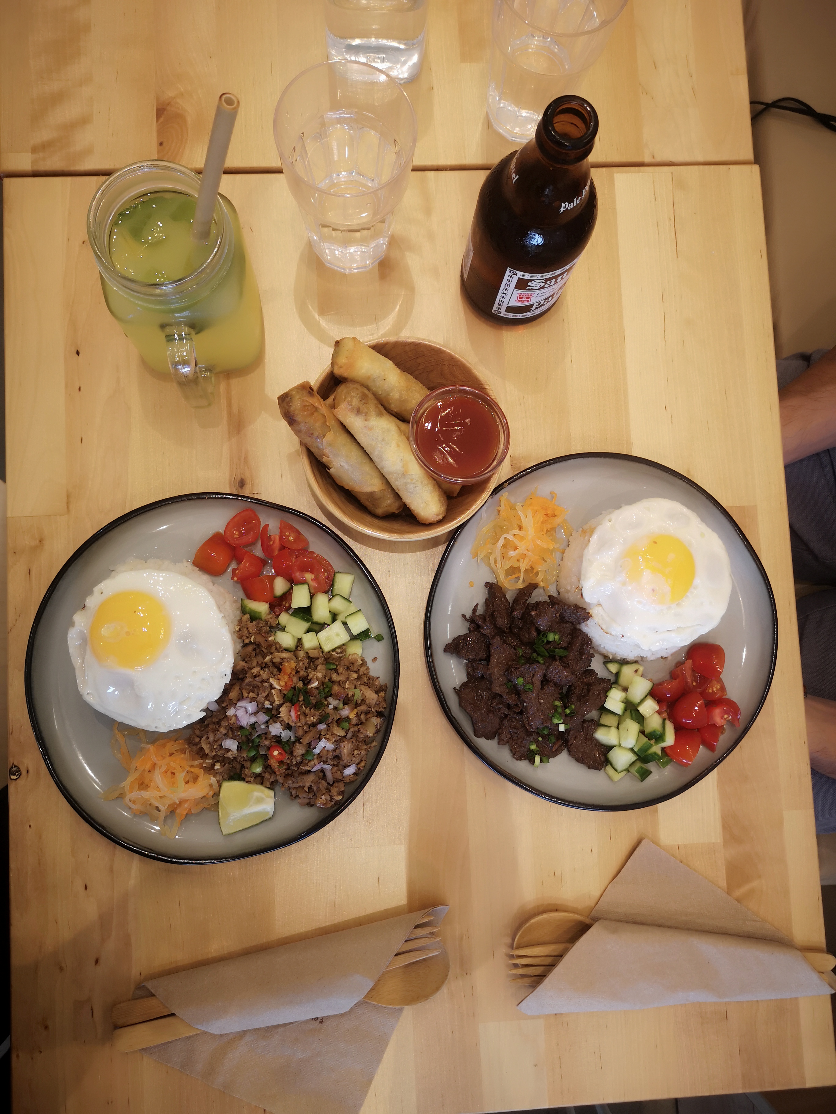 Petit restaurant. Venue un dimanche donc il n'y avait que le brunch philippin + le adobo de poulet. Excellent Adobo et calamasade . Par contre tapsilog un peu trop poivré et lumpias corrects. A retester le soir pour les bochettes. Par contre, niveau eau, il n'y a que du perrier en canette, pas d'eau plate hormis de l'eau du robinet.