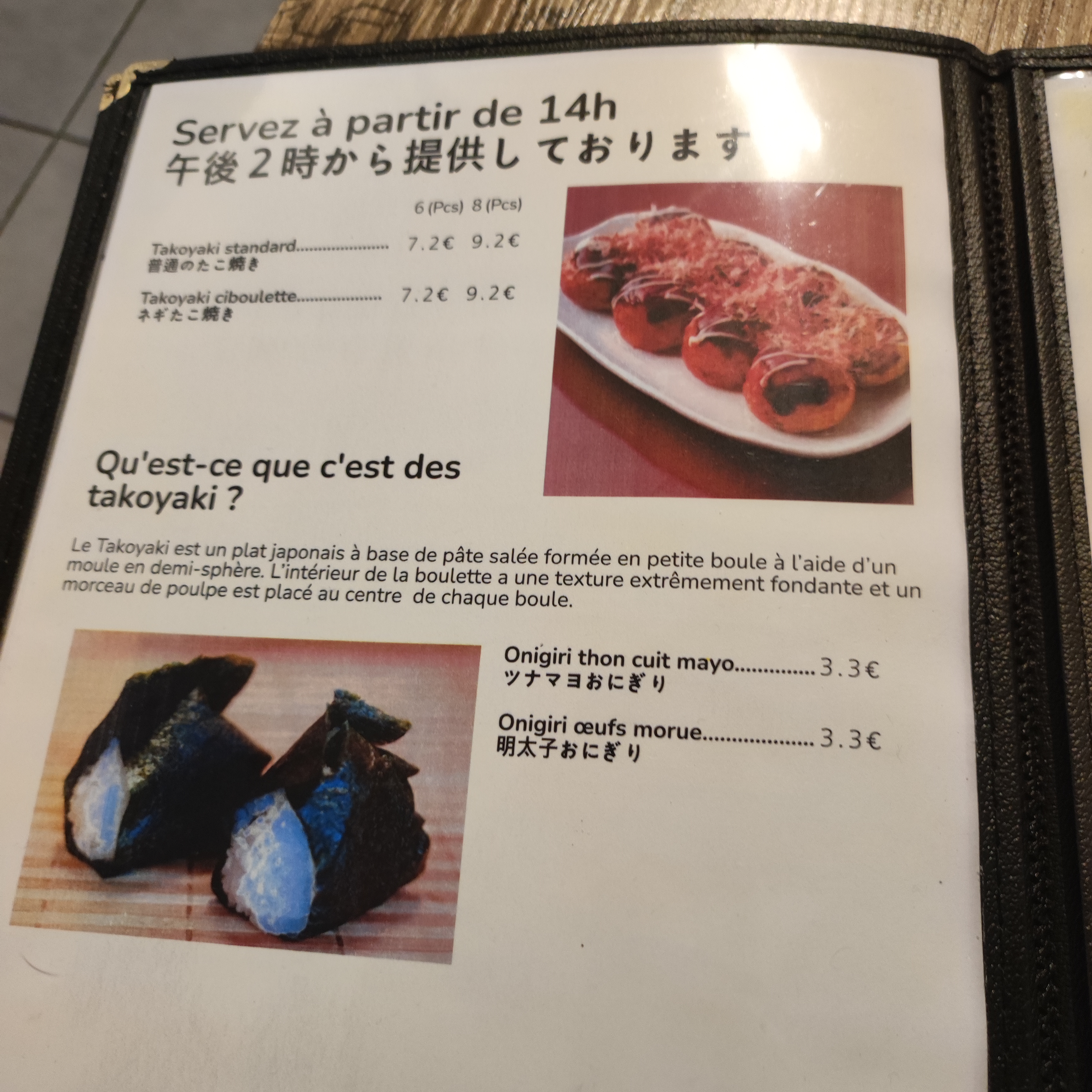 Très bon takoyaki, par contre la salle est petite. Très bon rapport qualité prix.