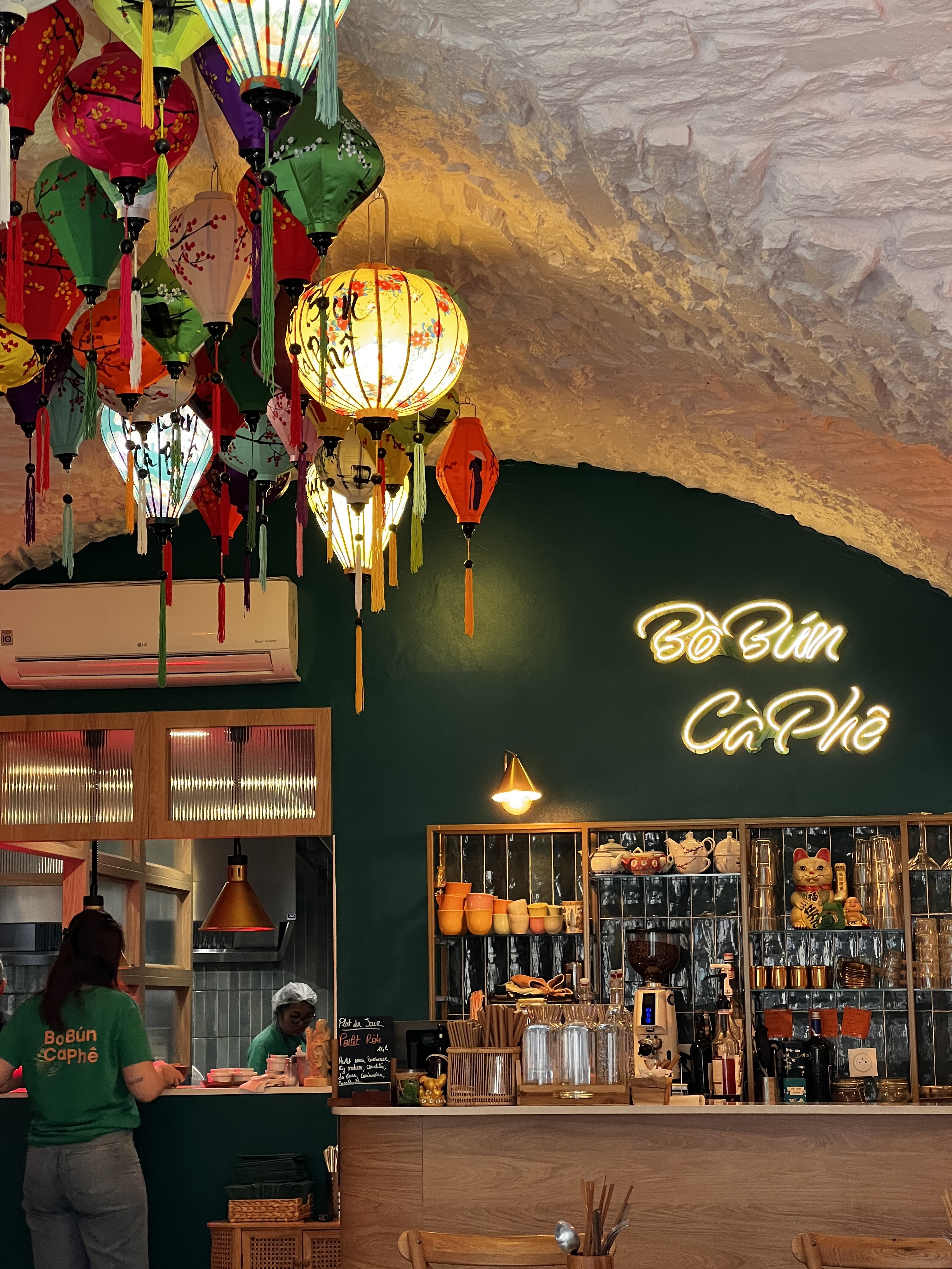 Un café super mignon de cuisine vietnamienne. Respect des recettes vietnamiennes approuvé par mon mari qui retrouve les saveurs des plats de sa grand mère . Décoration très girly et actuelle , vue sur les cuisines . On recommande vivement et n’oubliez pas de réserver.