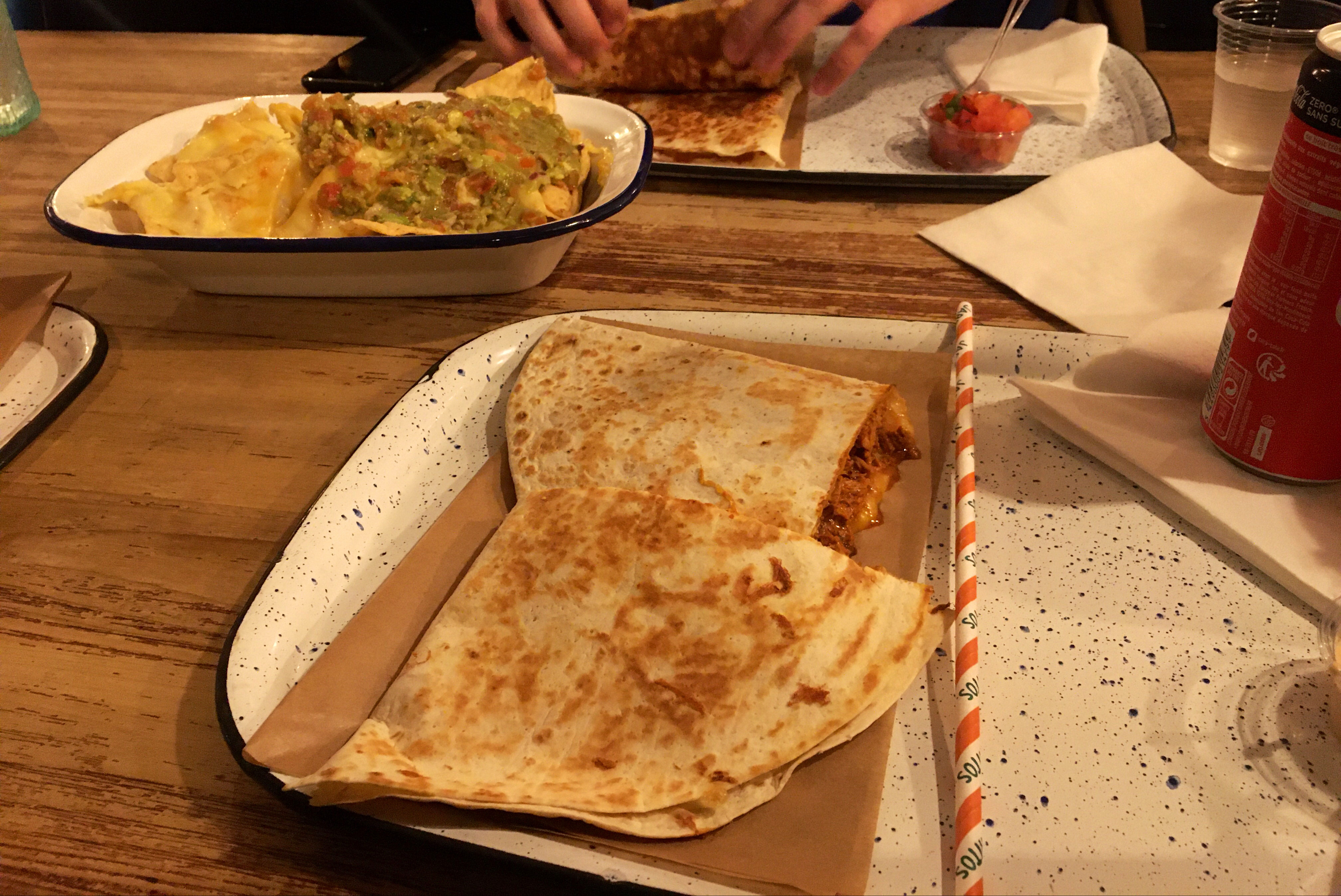 Je suis un peu déçue. Au niveau de la nourriture on ne sent pas vraiment les saveurs. Nous avions un burrito et des quesadillas toutes les deux au « super pollo ». Honnêtement le poulet est fade et sans la sauce je pense qu’on mange de la purée. Franchement décevant sachant qu’on paye plus cher par rapport aux autres établissements du quartier qui ont tout compte fait une proposition bien plus intéressante… Les serveurs ne sont pas à la pointe de l’amabilité mais au moins c’est rapide.