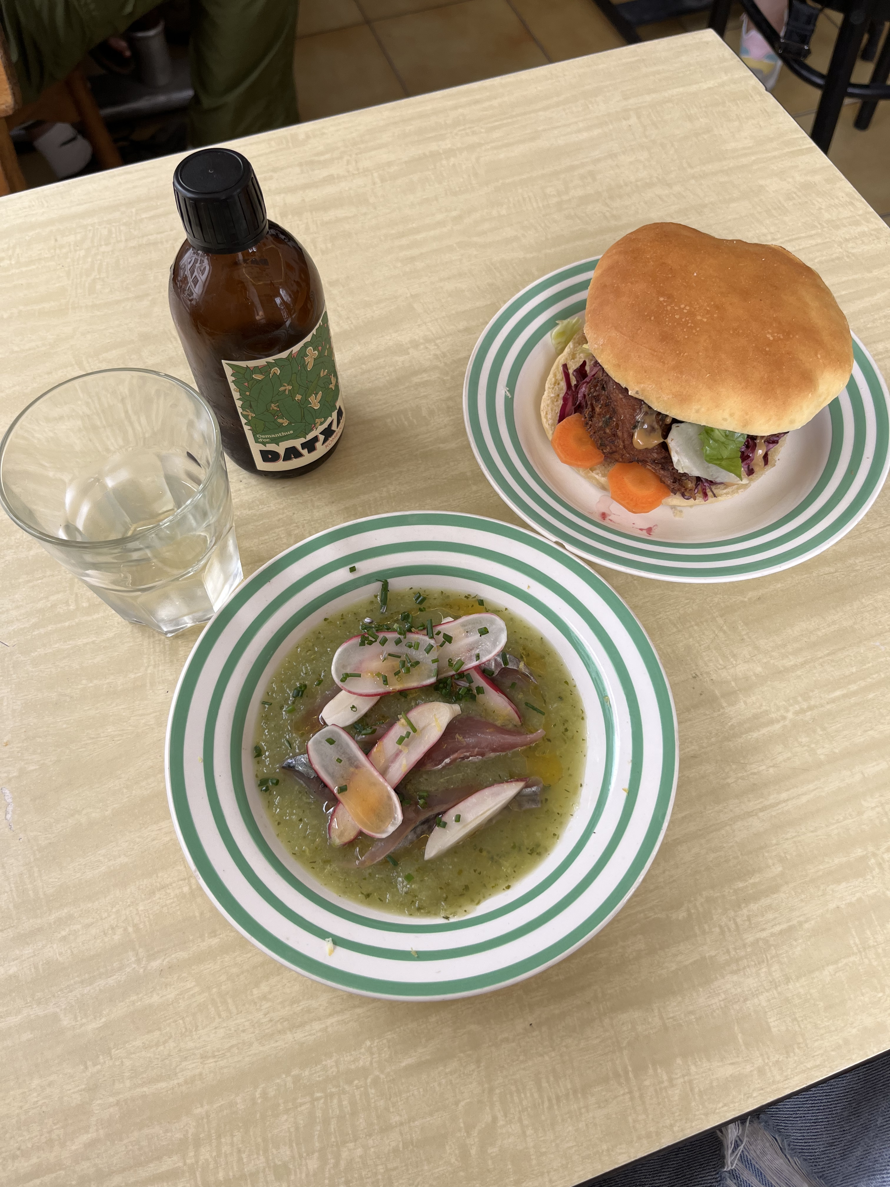 Endroit mignon avec des sandwichs savoureux et des plats de saison servis dans des céramiques vintage. Belle terrasse à l'écart de la foule. Mention spéciale pour les vins naturels. Leurs gâteaux avaient l'air très faits maison et juteux. J’en aurais goûté un sans leur popularité (tous vendus). Des raisons suffisantes pour revenir ❣️