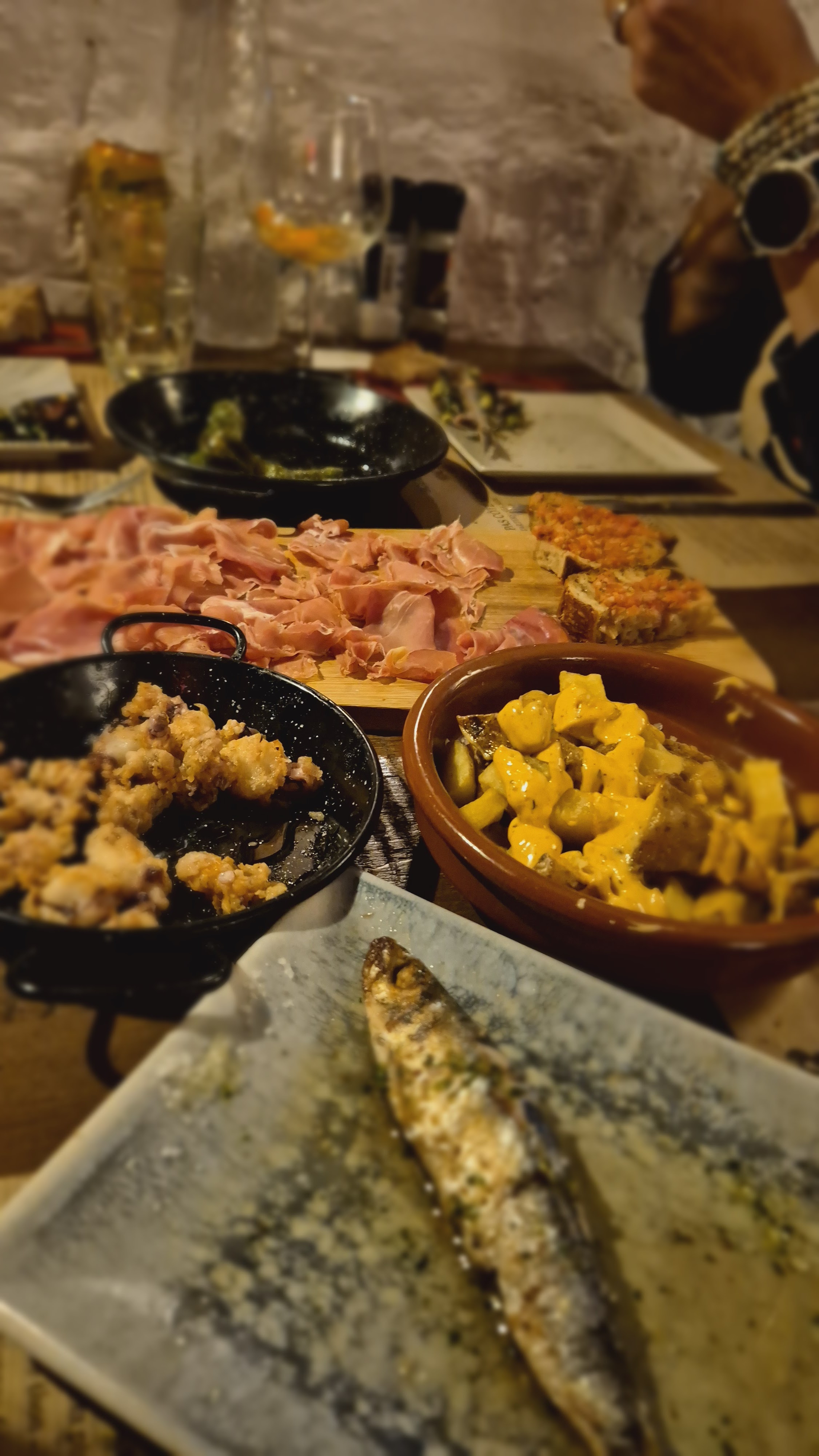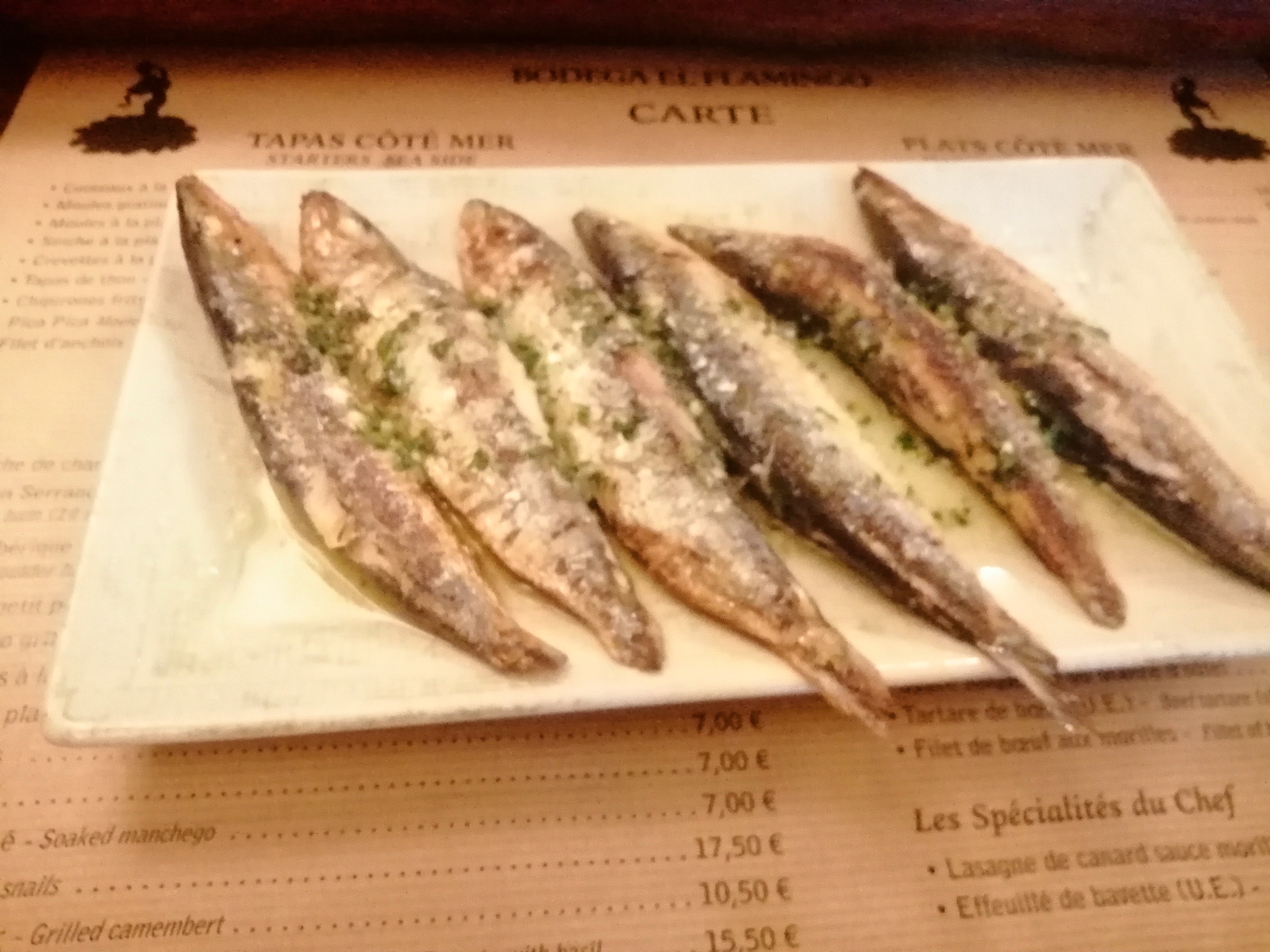 Les tapas très inégales, du bon (sèches) et du moins bon : crevettes grillées, thon, sardines semblent être préparés très à l'avance et juste réchauffés avant de servir, ce qui ne les avantage pas au niveau du goût. Tout arrive extrêmement vite, littéralement deux minutes après avoir passé la commande. L'impression très désagréable qu'on veut vous faire partir le plus vite possible. Le serveur n'arrêtait pas de venir toutes les trente secondes pour demander si on a choisi. Or quand je viens au restaurant, je paye pour passer un certain temps, ce n'est pas une cantine ni fast food.