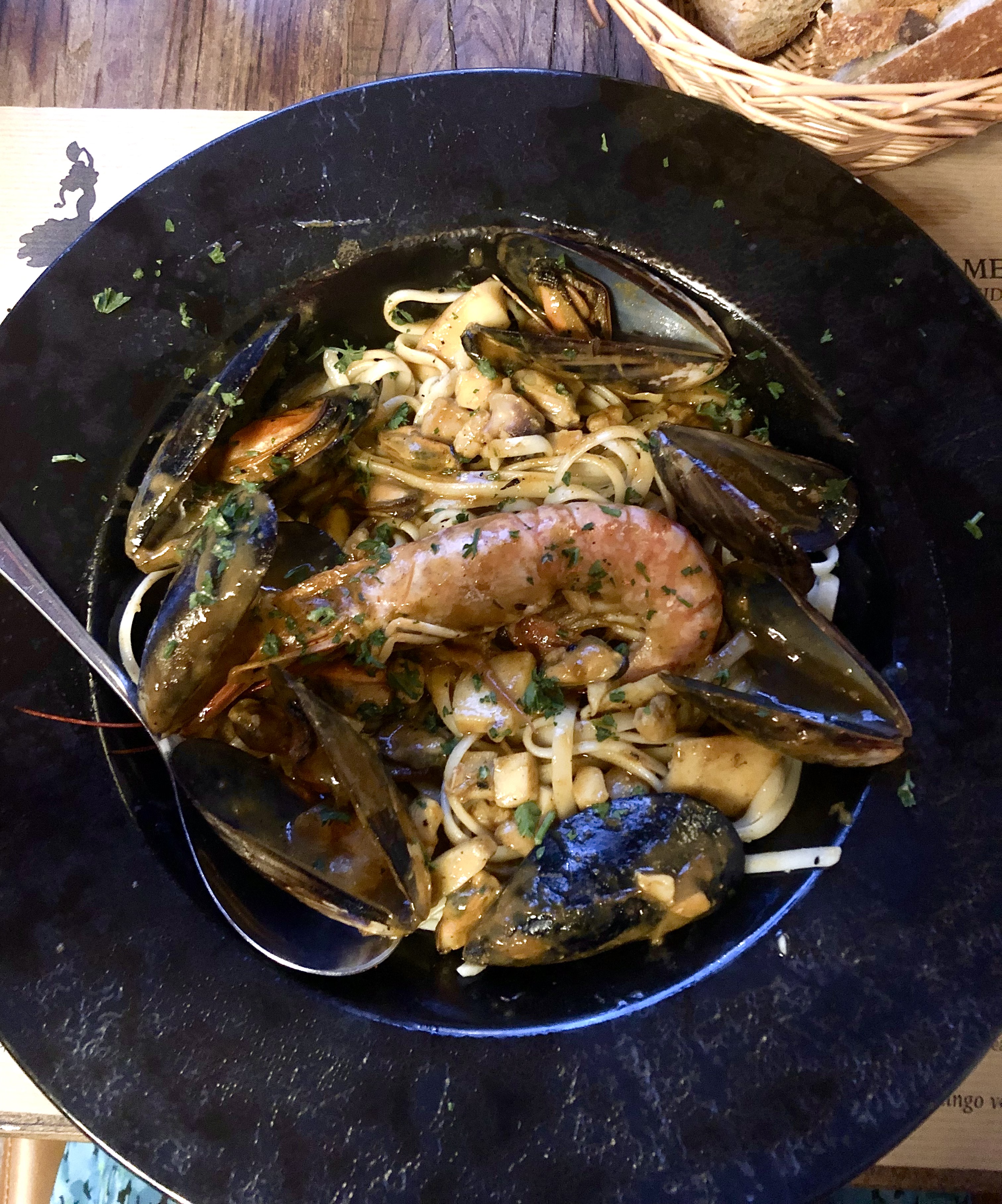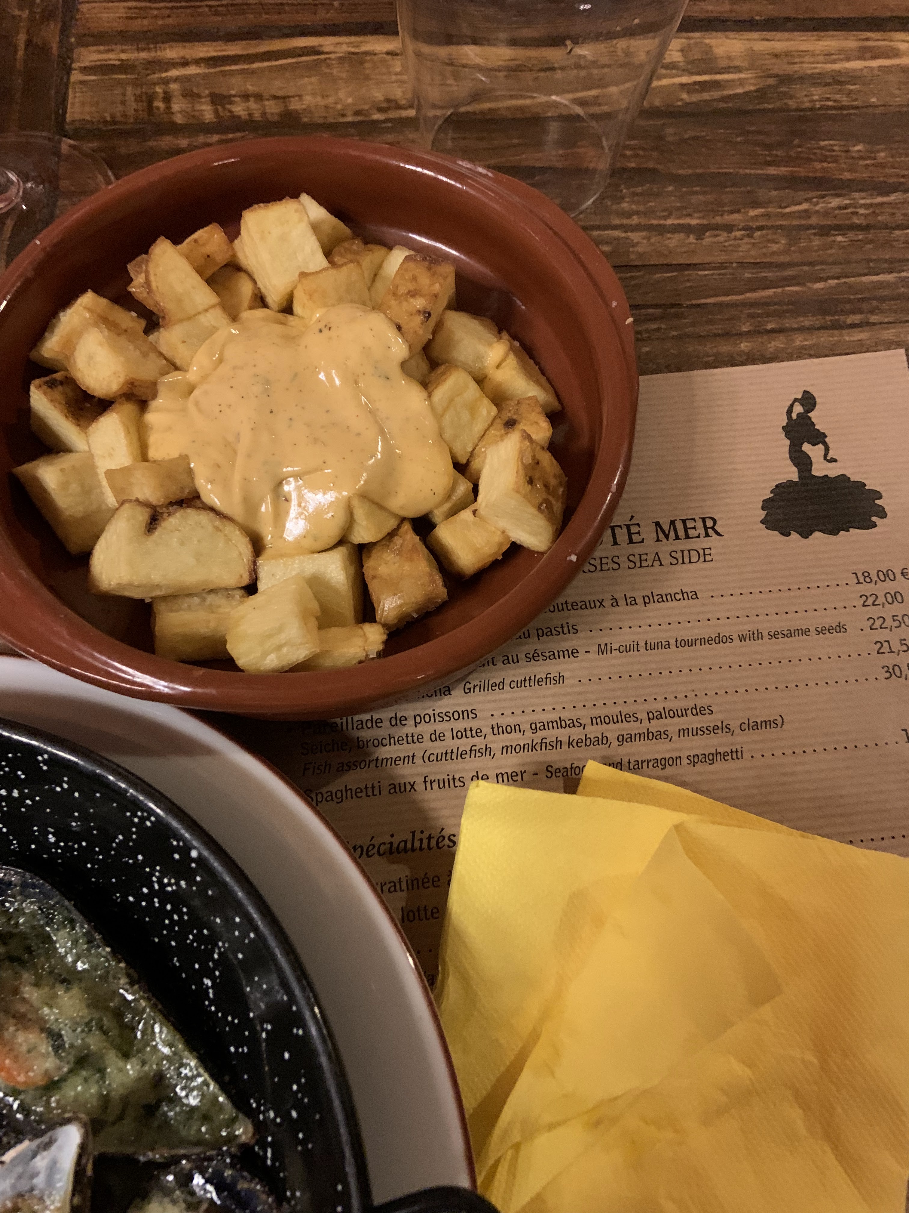 Une très belle découverte… nous avons très bien mangés (couteaux en persillade, fideua et pour finir un chou coco en mode profiterolles) et nous conseillons la sangria blanche pour l’apéro qui est excellente ! Une patronne au top qui envoie, très sympathique que nous remercions pour le conseil des assiettes centra… ;-) !