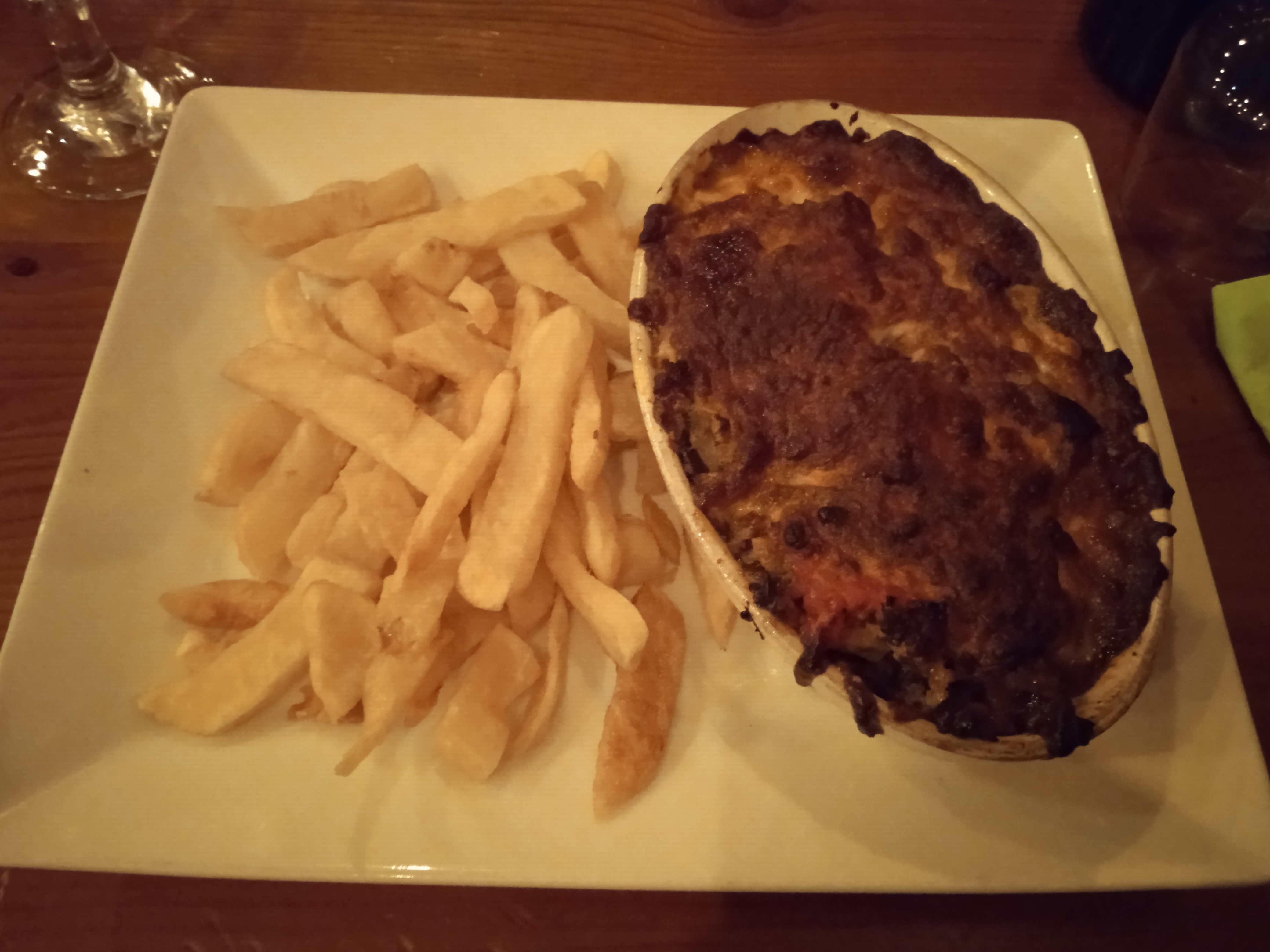 J ai pris le gratin d aubergine pas terrible et la cuisson des frites une odeur d huile désagréable. Serveuse agréable et pro. Quelle galère pour stationner.