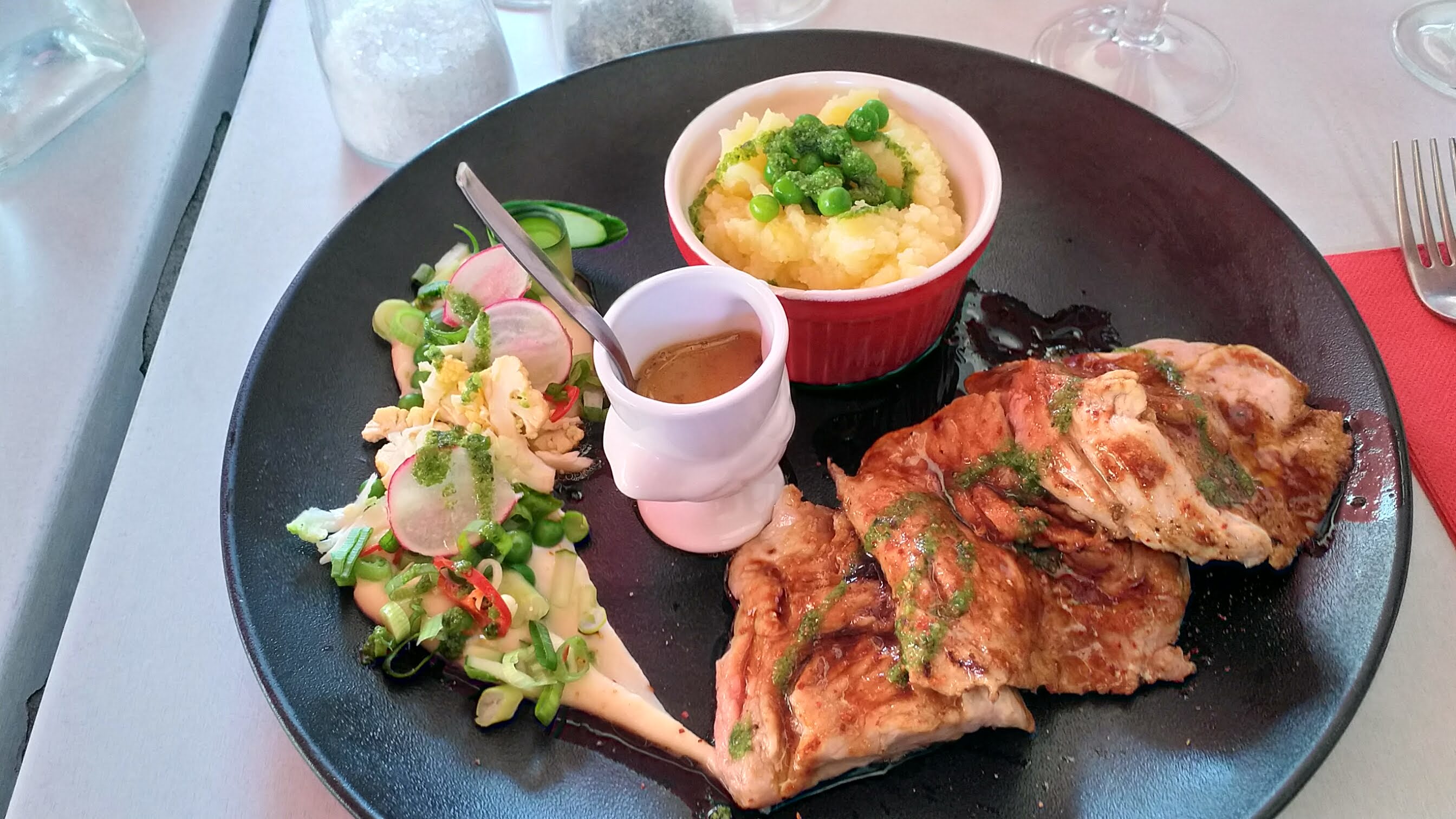Bon mais cher , même pour une purée grand-mère! Portions réduites, nous avons eu le même ramequin de purée qu une petite fille de 20 mois a côté de nous . Bon , mais 60 euros a 2 pour une sangria (très légère, noyée par la glace) une pression, 2 plats aux portions légères elles aussi, un pichet de rosé a 10 euros (50cl) et un fromage, c est trop cher. Carte très limitée. Nous ne recommandons pas.