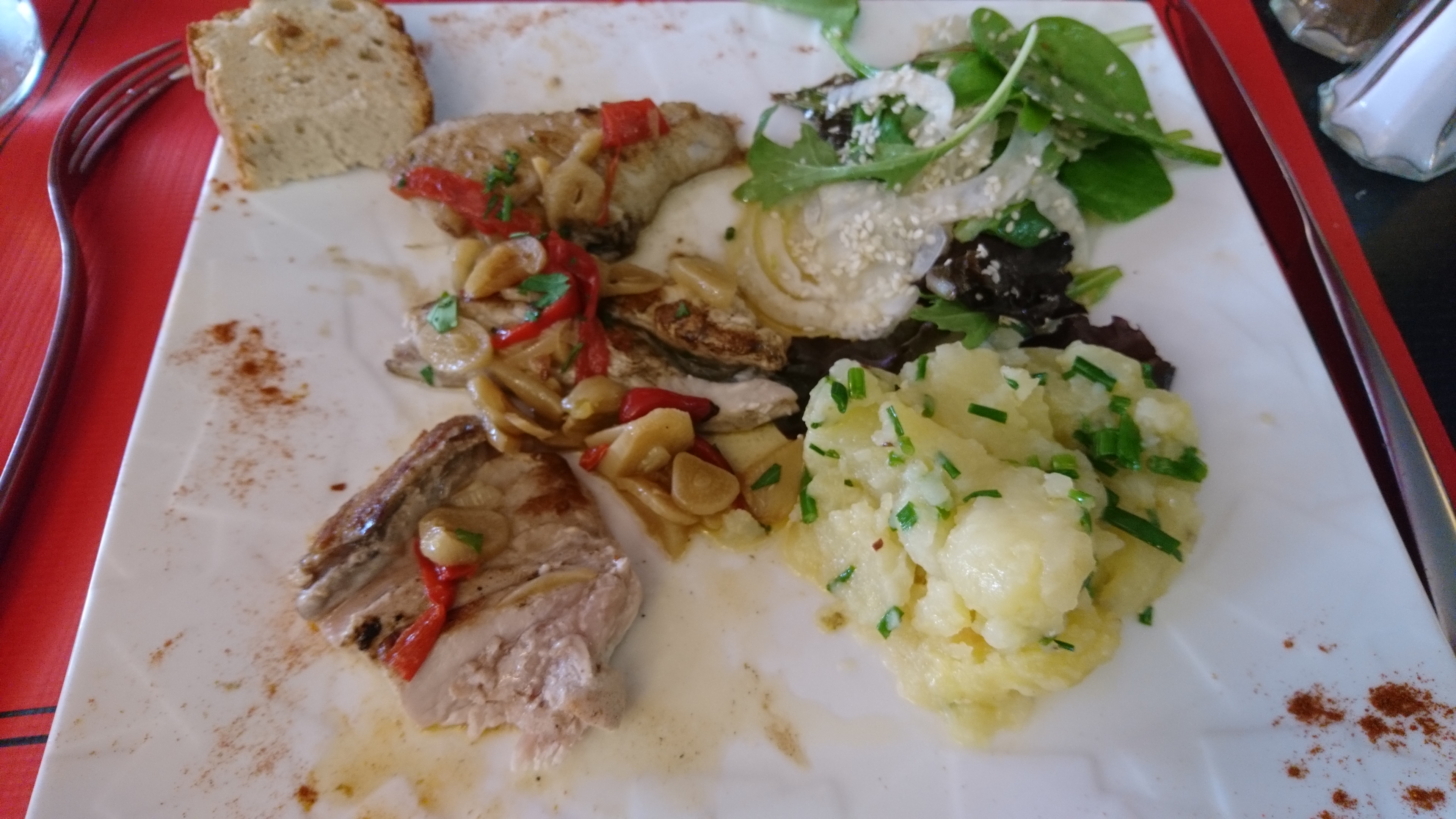 Un menu midi à 24,90 même le dimanche, dans le coin, c’est très abordable et alléchant, dans le menu, chipirons grillés en persillade bon, noix de porc en sauce très bonne mais petite quantité (avec menu dans sa totalité ça suffit quand même malgré tout), 3 boules de glaces en dessert. J’ai pris hors menu une paella très bonne même si pas totalement « traditionnelle ». Et surtout, des serveurs accueillants et soucieux.