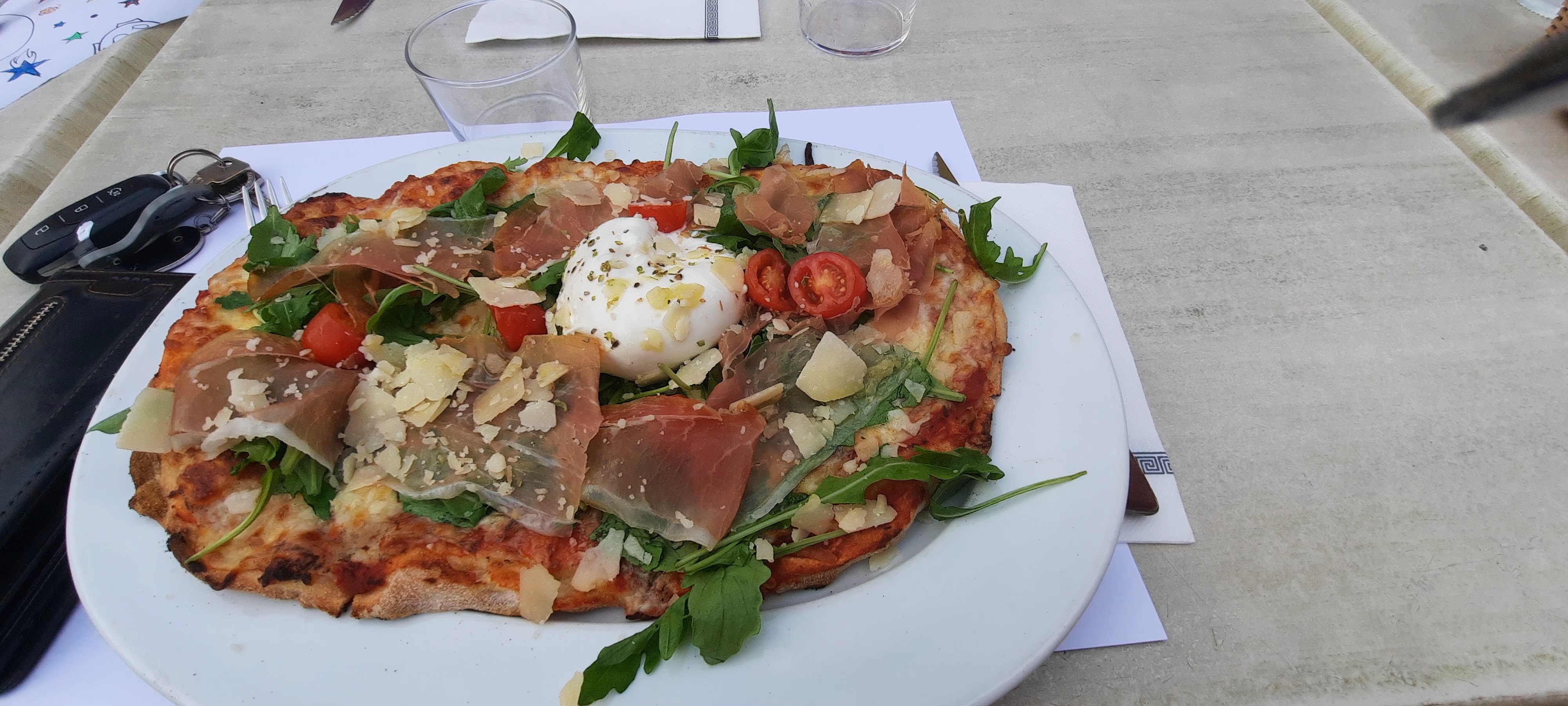 Pizza et salades bonnes mais nous étions au fond de la salle sans climatisation et il faisait beaucoup beaucoup trop chaud. Dommage