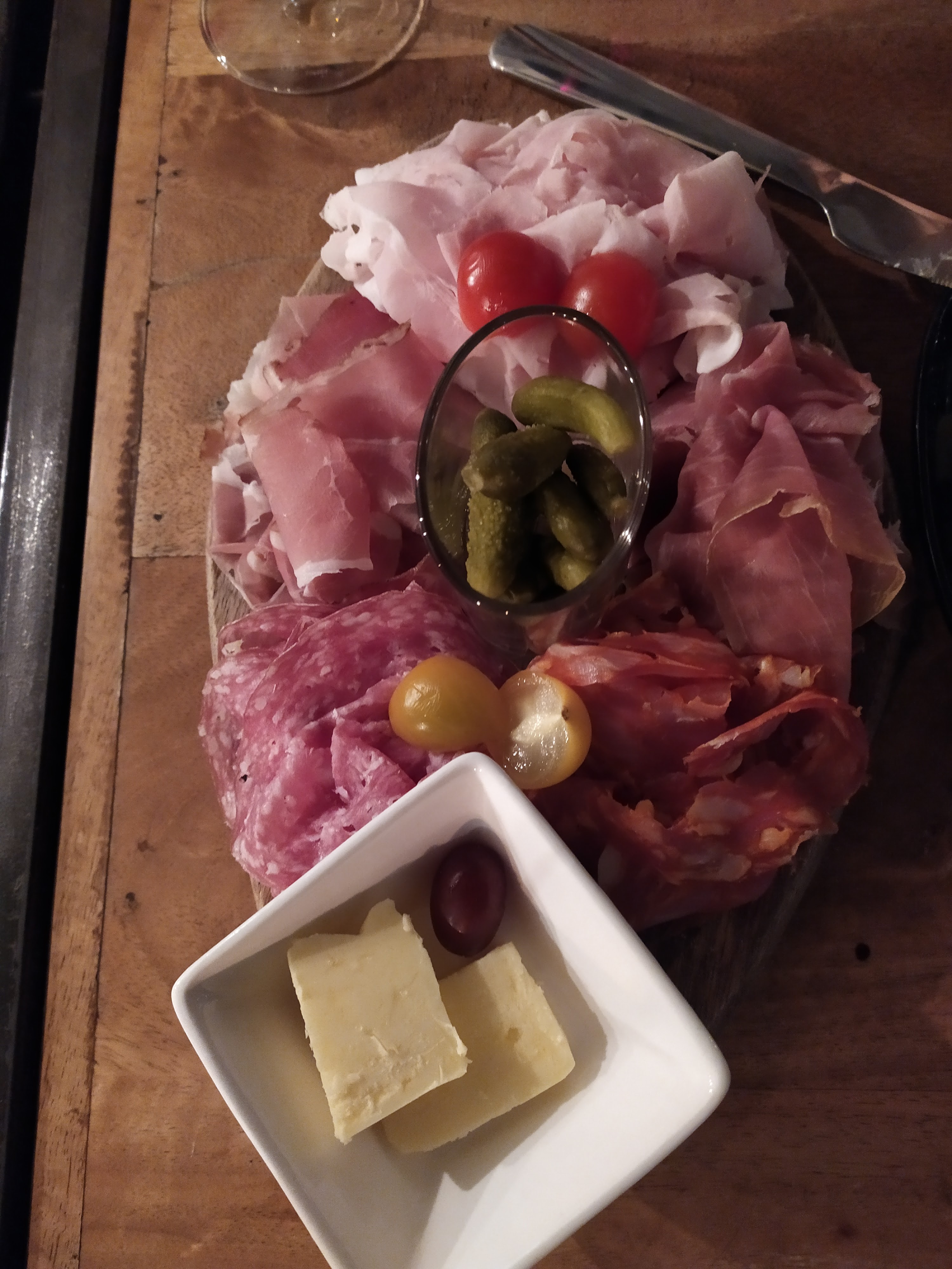 La charcuterie fondait dans la bouche, le gorgonzola crémeux tout était délicieux sur la planche... Le patron était heureux des produits qu'il envoyait, j'ai rarement mangé de la charcuterie et du fromage aussi bon.