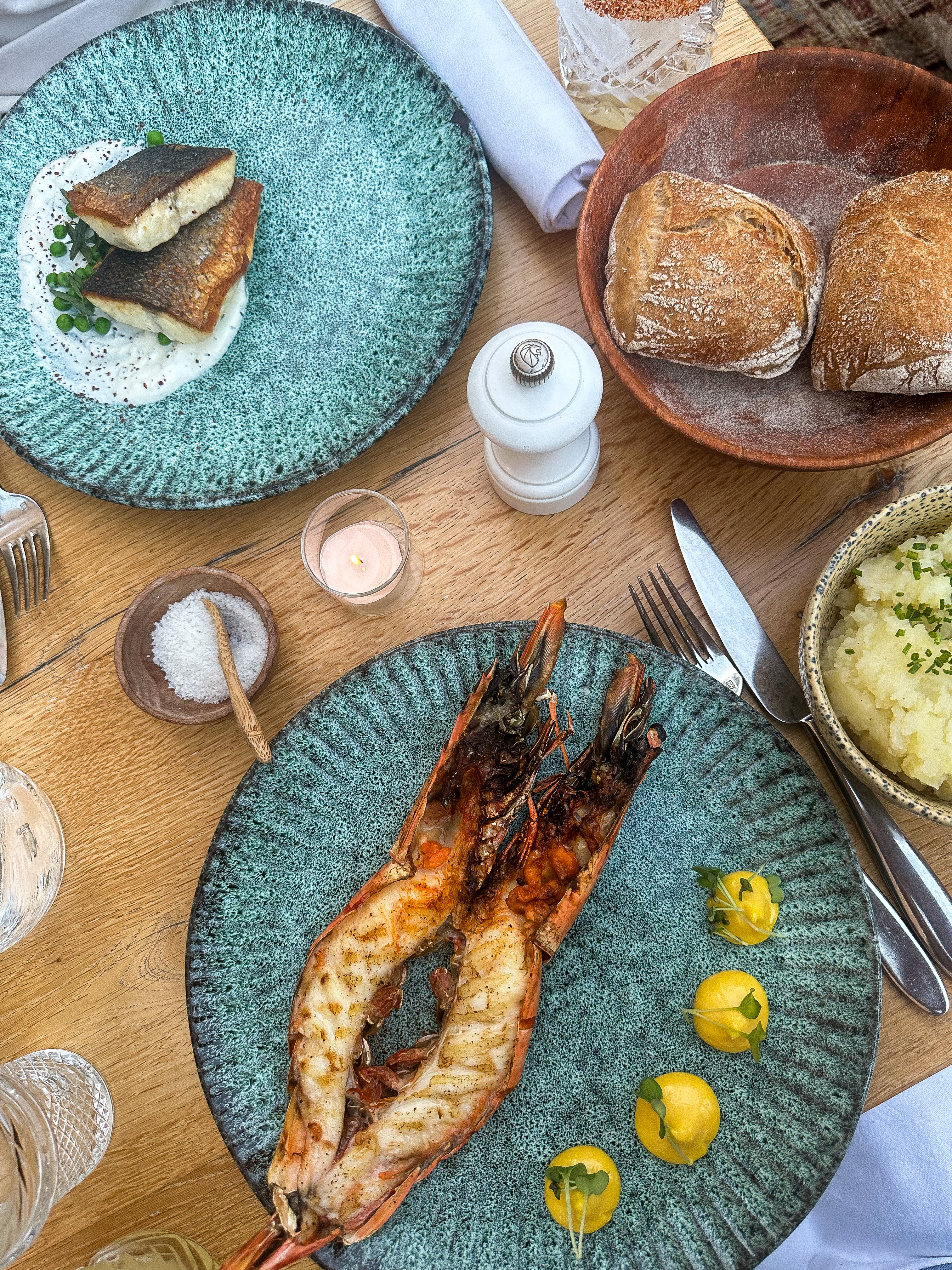 Cadre recherché tout comme les plats proposés, avec de belles saveurs et des produits frais (mention spéciale pour les langoustes). En revanche nous avons eu l’impression d’être expédiés : les cocktails ont été emmenés en même temps que les plats, quel intérêt ? On nous pousse vers la sortie en voulant sans cesse enlever les assiettes lors du premier service … c’est vraiment dommage !