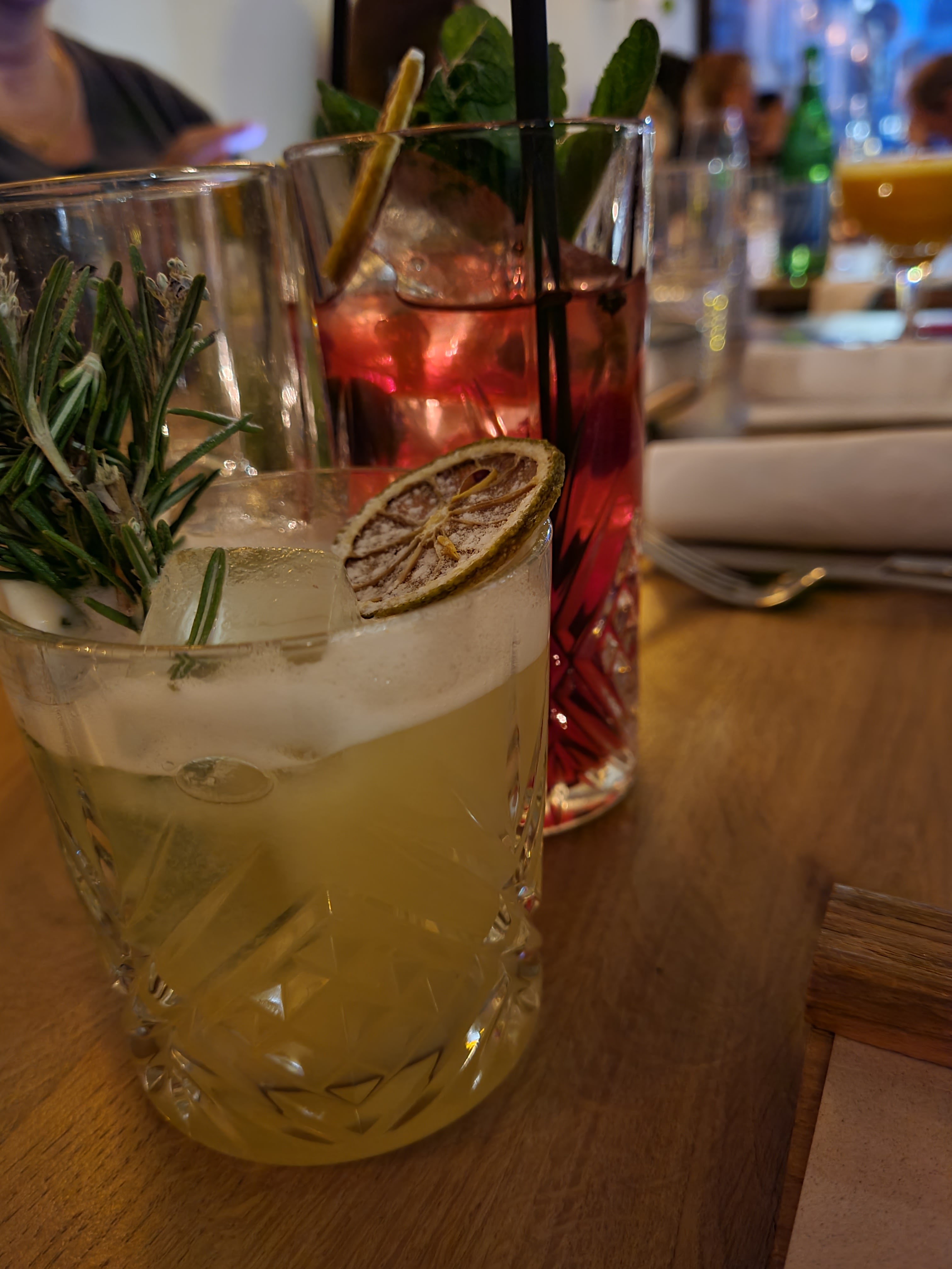 Les cocktails sont très très bons et travaillés, rien a voir avec des cocktails dans des bars lambda. Cote cuisine tres bien aussi, tortiglioni à la truffe excellentes, viande aussi tres bien cuite, (le filet mignon de porc n'est pas sec par exemple) Côté Service c'est professionnel et efficace.