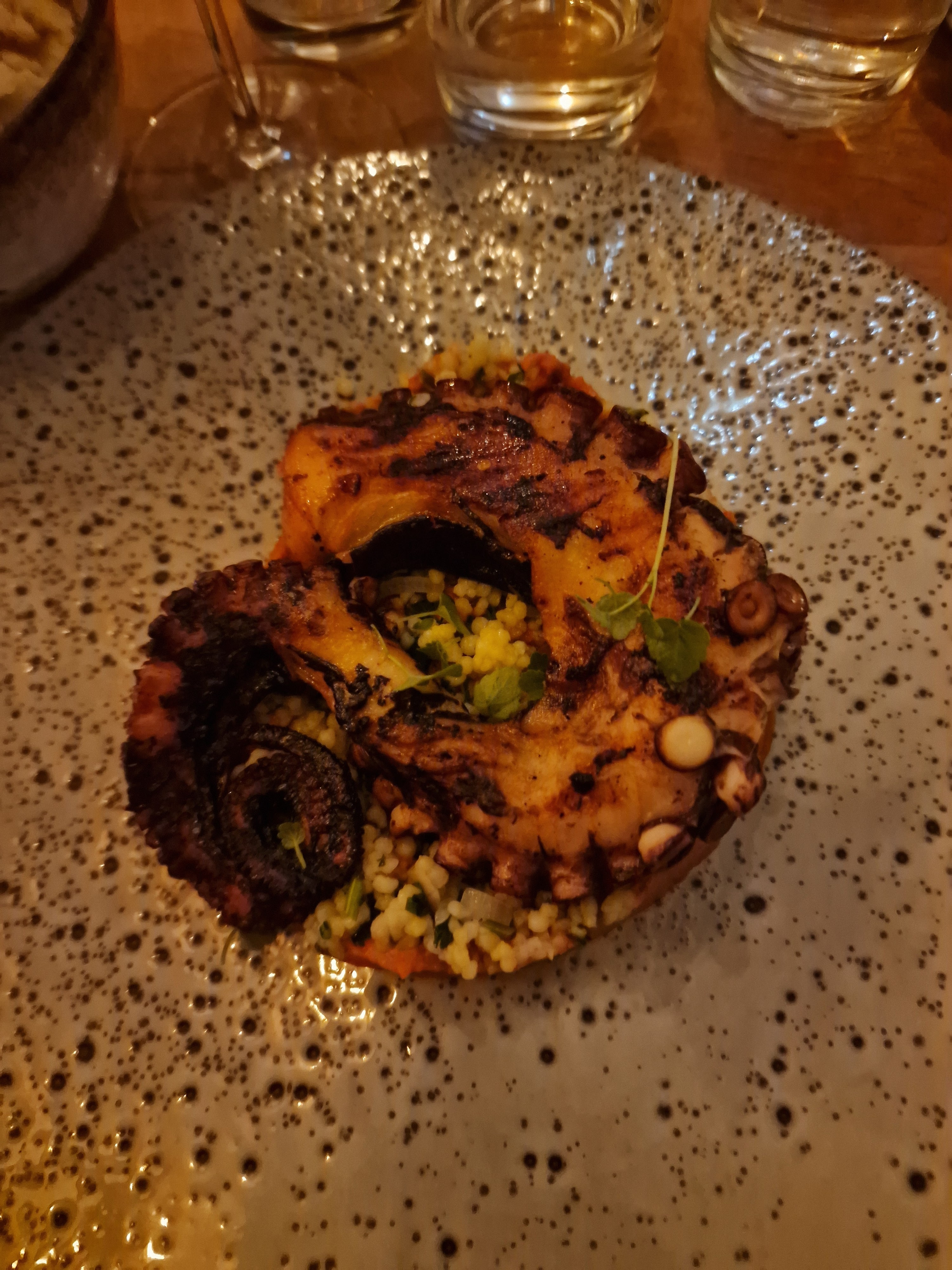 La très sympathique serveuse, ainsi que les bons plats ont rendu se moment gastronomique fort agréable ! Le poulpe grillée et sa purée se patate douce: assaisonné comme il le faut 👌 Restaurant sans chichi, simple, efficace avec une forte envie de revenir. Merci !