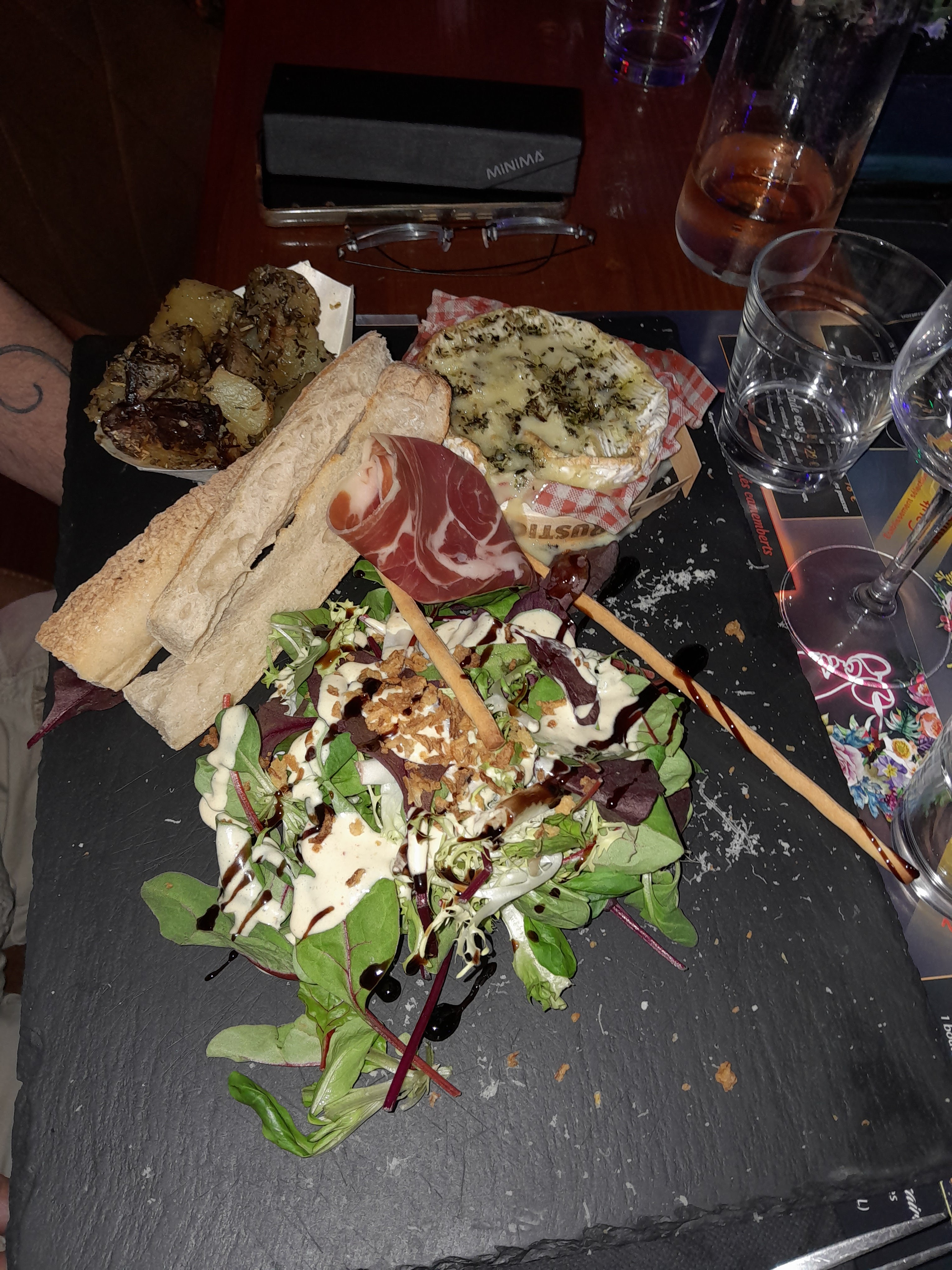 Arrivé à 20h30, plats servis à 23h pile. Salle privatisée ? Minimum 20 personnes extérieures sont arrivées au début du repas. 3 choix de plat principal, avec garnitures complètement différentes de ce qui était annoncé : ATTENTE -> pomme de terre au four. RÉALITÉ-> poêlée de légumes surgelées mal décongelé. On a osé nous certifier que tout ça était du frai. Puis finalement : C'était soit ça, soit vous attendiez encore une demi heure. Les assiettes étaient encore pleines à la fin du repas. Ils exigeaient minimum 20 personnes, mais ne sont même pas capable de s'occuper correctement de 5 personnes ! Nous avons payé 39 euros pour l'alcool, la plat, le dessert et l'ambiance, assez raisonnable en temps normal. Mais au vu des circonstances il aurait été normal de nous réduire les tarifs. Et je ne parle même pas des sanitaires. Inadmissible, 0 étoile.