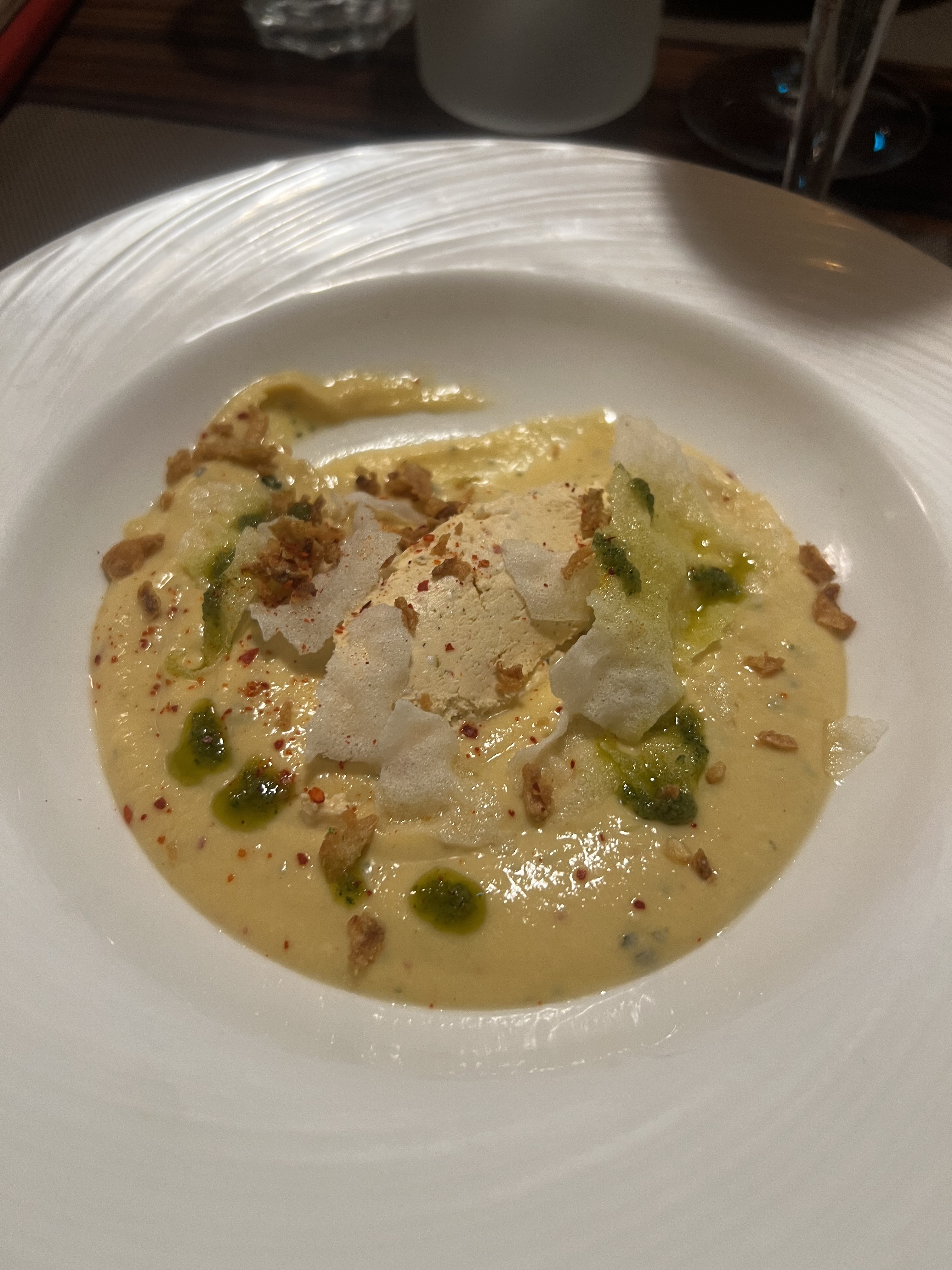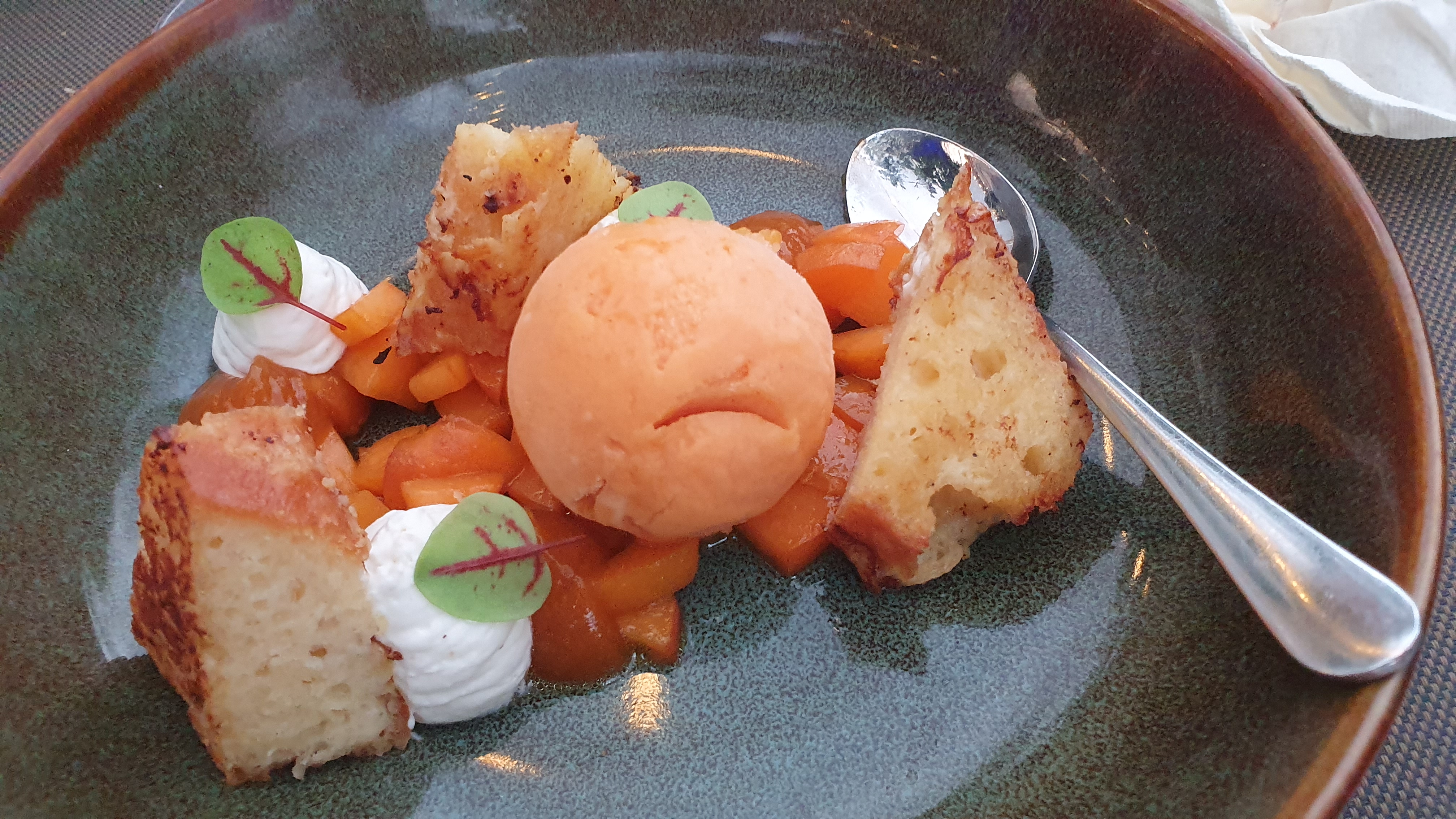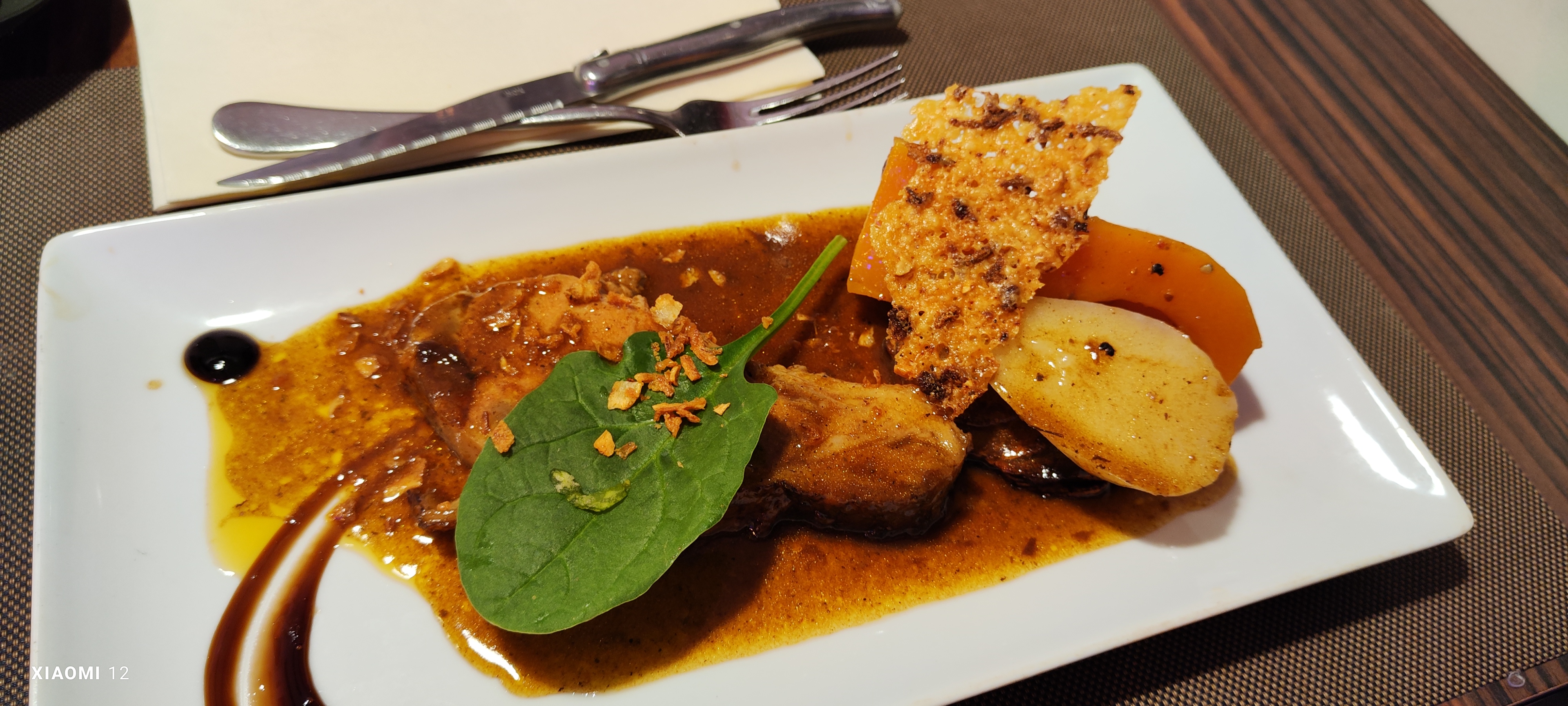 Zéro faute tout est extrêmement bon Carte équilibrée alléchante et creative, de saison … Proportion correcte …. Foie gras et tataki de thon succulents, st pierre et tournedos de cerf délicieux!!!! Trilogie de glaces et fruits top, et le feuilleté de poire ma juste un peu déçu on ne devine pas la poire mais la crème pâtissière … enfin de très bons amants, le spritz bof !