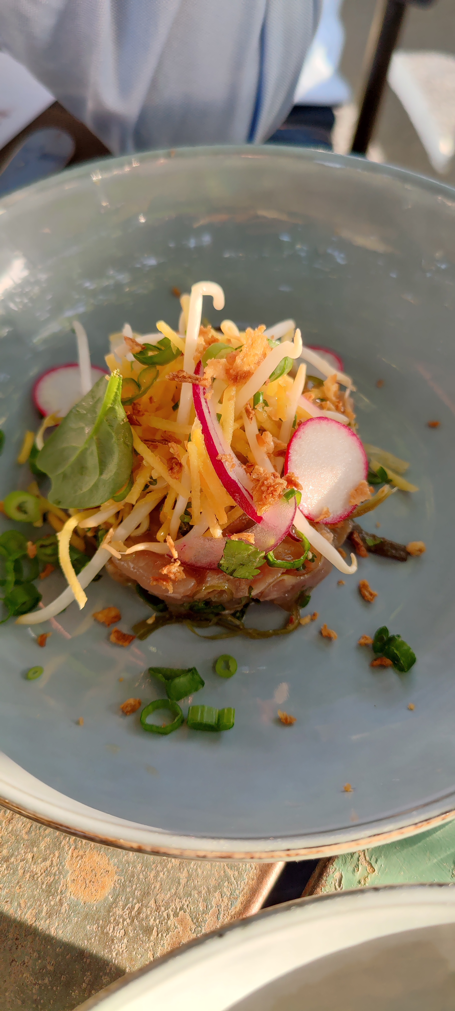 Excellent restaurant, service parfait nous avions une contrainte temporelle difficile à tenir (et étions en plus en retard!) et au final le timing a été respecté grâce aux différents serveurs et à la cuisine. Plats variés et de très bonne facture, la cuisson du thon était parfaite ! Hâte de revenir avec un temps plus clément pour profiter de la terrasse.