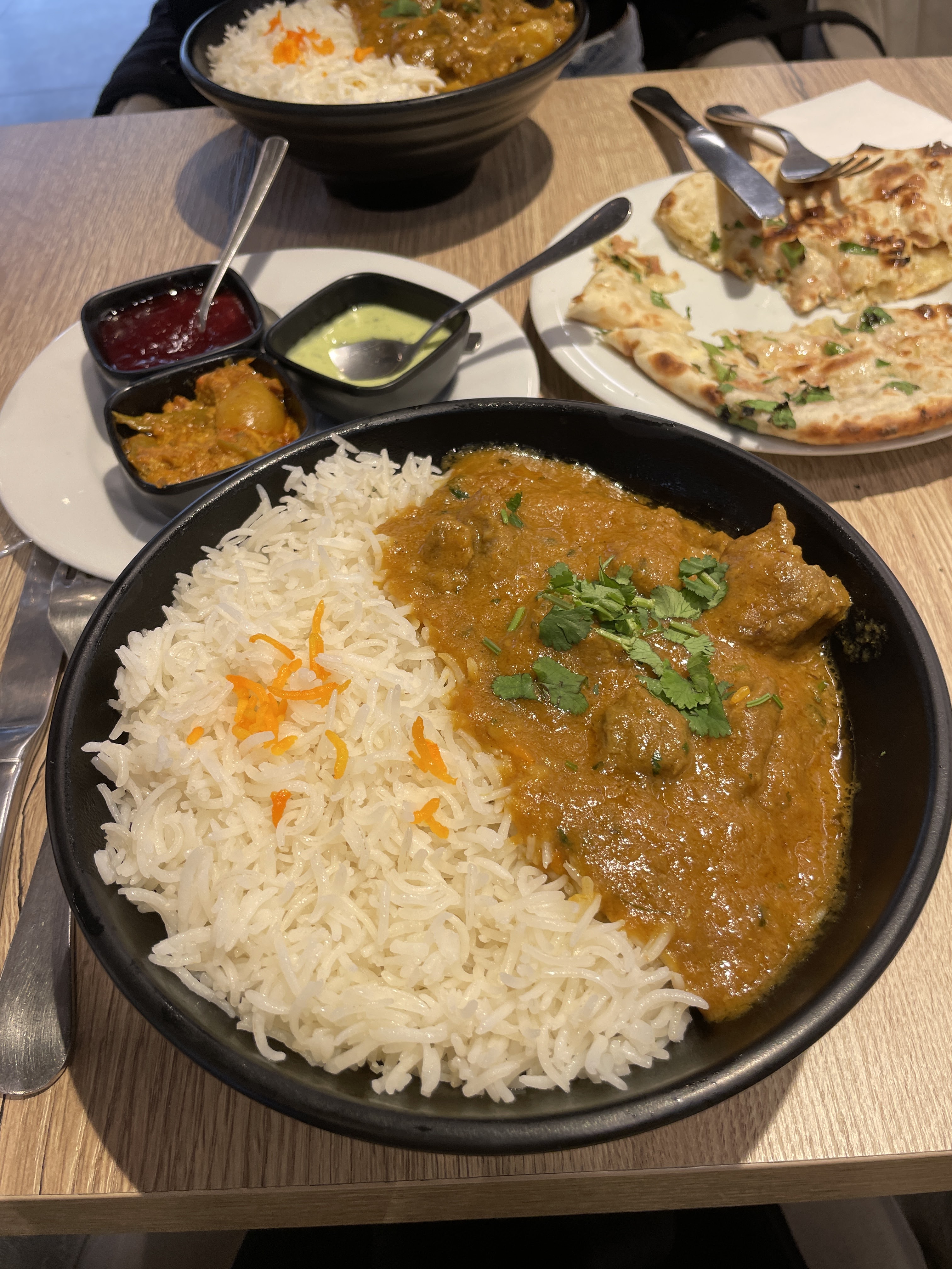 Très bon ! Je recommande l’agneau sagwala et le cheese naan à l’ail (incroyable). Un service impeccable ! Et le thé est juste trop bon. Il n’est pas sur la carte mais il devrait y être !