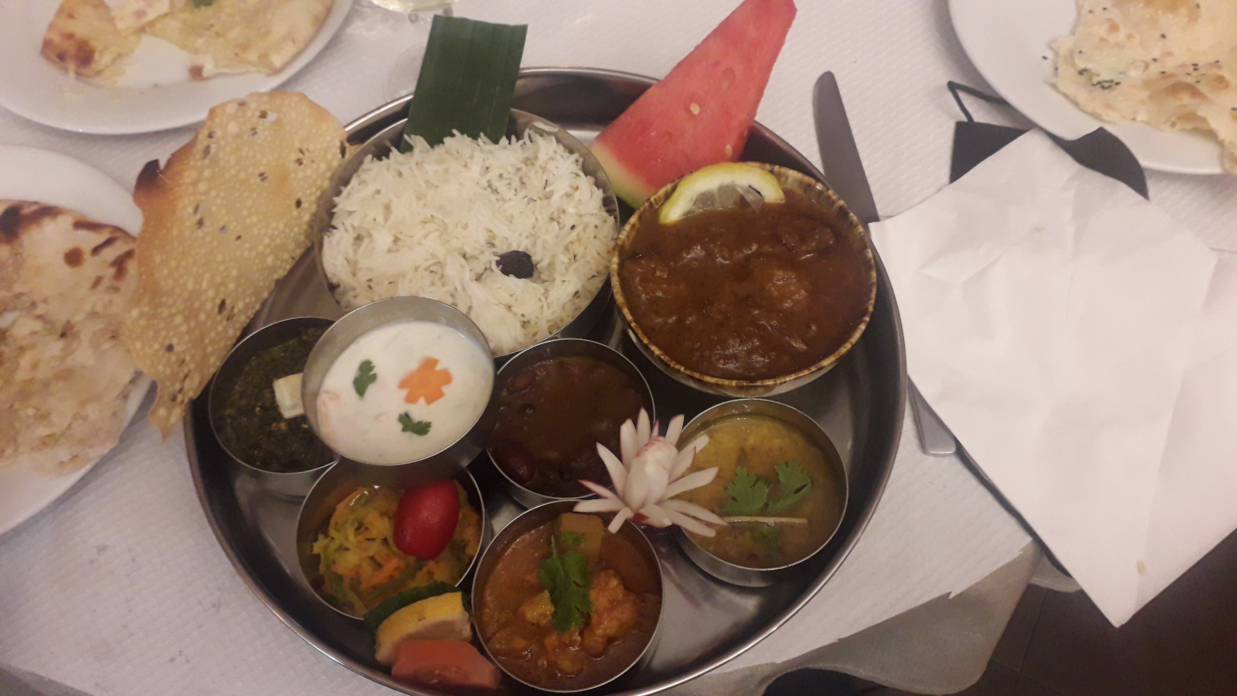 La nourriture et le partage de la culture indienne par les gérants nous ont permit de voyager durant un très bon repas. Mention spéciale aux différentes sauces (peu à très fortement épicé).