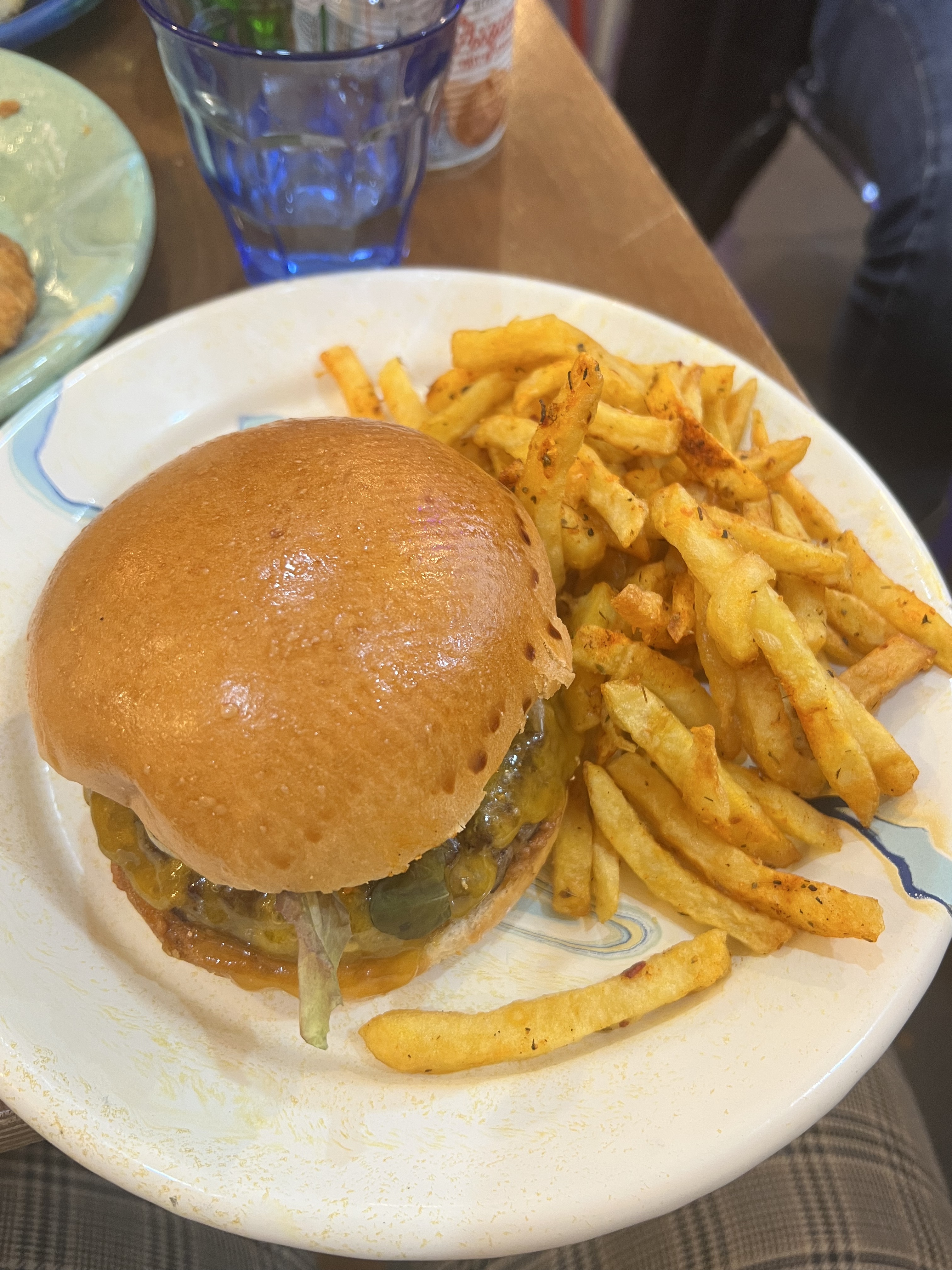Alors en trainant sur instagram, j’ai été très influencé pour tester ce restaurant. En toute honnêteté, je suis resté un peu déçu. La décoration est top, une bonne playlist, le personnel souriant d’où la note de 3 mais le repas n’était pas à la hauteur de mes espérances.Les frites étaient froides comme un peu rassis, le burger (Kin la belle) plutôt bon mais tiède. Le tout pour 17,50 euros ce qui m’a paru énorme par rapport à la qualité du plat. 😅 Je n’aime pas critiquer mais entre ce qu’on nous vend sur les réseaux et la réalité c’est different. Peut être que je ne suis pas venu le bon jour.