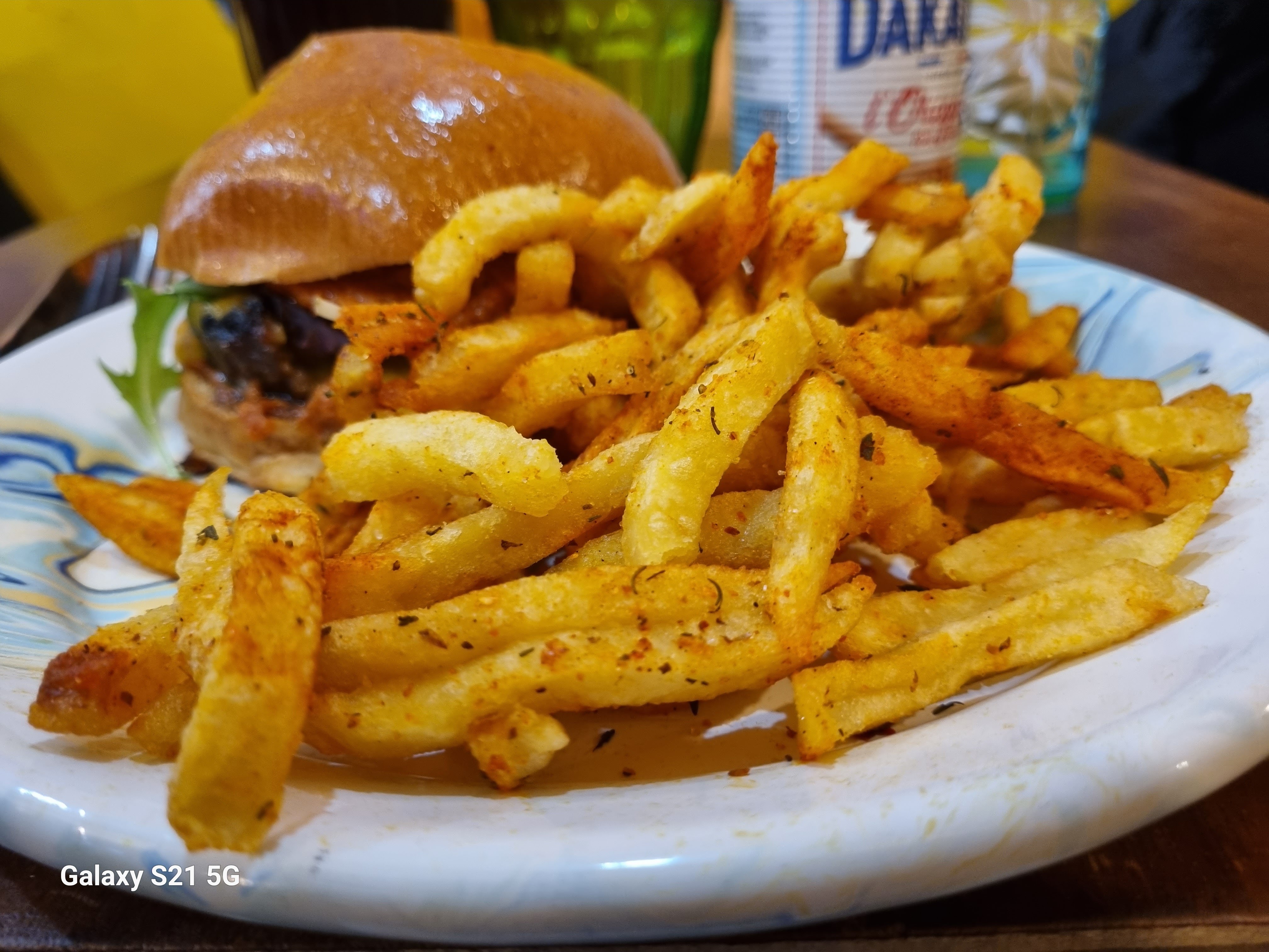 Une carte originale, plein de saveurs. Service souriant et rapide malgré une forte influence. Les goûts sont bien là. Je me suis régalé. Surtout les frites aux 10 épices 😋😋😋