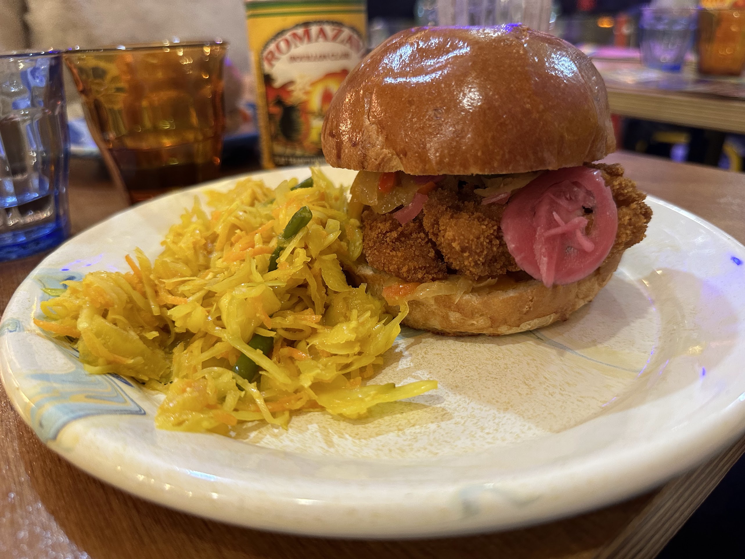 Excellente soirée ! Tant de merveilleuses saveurs en une assiette : un burger bien garni et si bon, et le poulet tellement tendre... 😍 Et même l'achard de légumes était succulent ! Accompagné d'un Bissap Fizz, super découverte. Bonne ambiance aussi, et enfin merci pour le service, impeccable et avec le sourire, ça mets de bonne humeur !