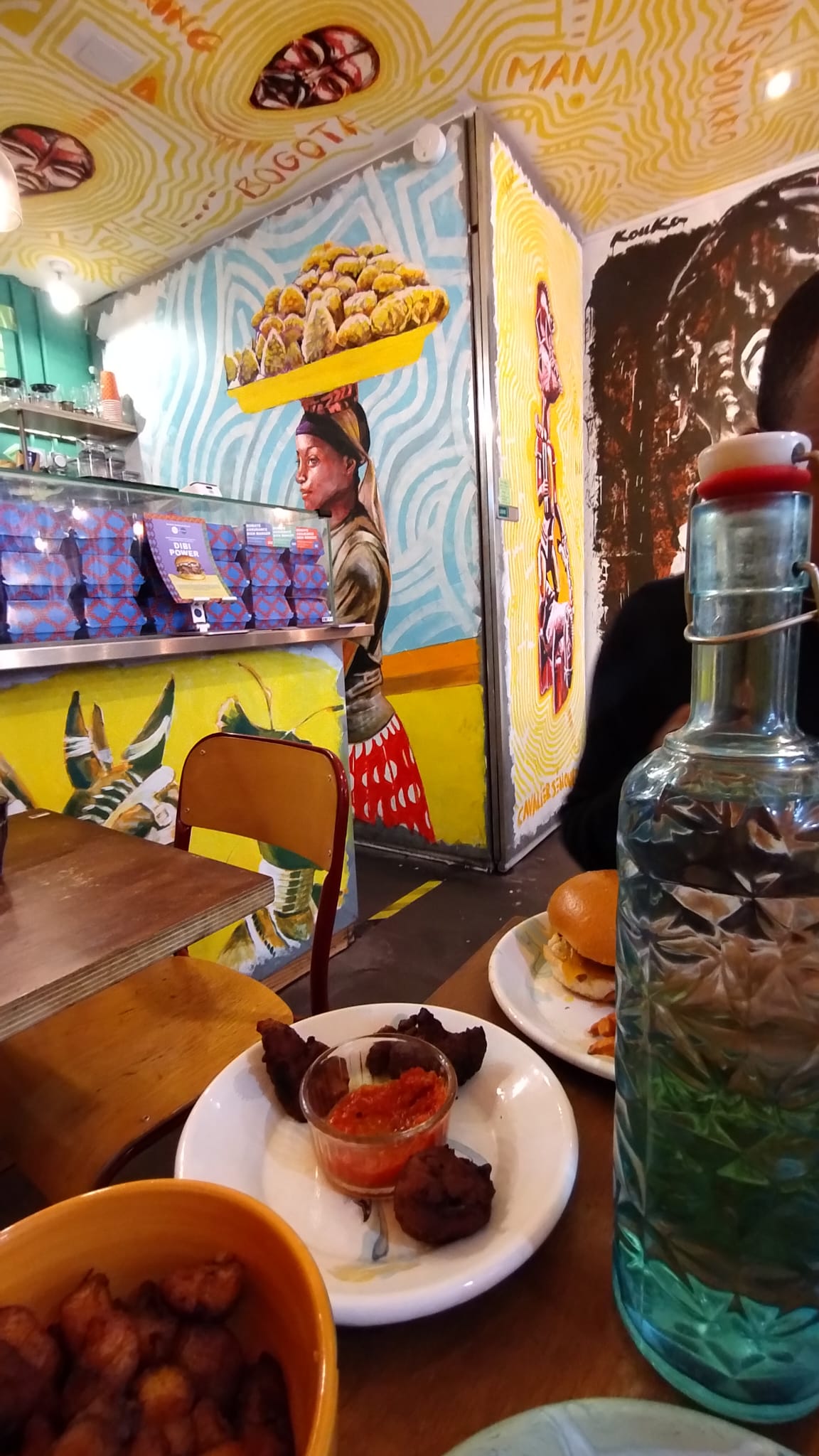 Des burgers aux saveurs africaines pour se régaler 😋 Un cadre coloré pour illuminer le dimanche soir. Un accueil chaleureux avec des sourires qui font du bien 😁 Que demander de mieux ? Une version burger sans gluten bien sur !! 🤩 Vu le monde, nous ne sommes pas les seuls à savoir apprécier les bonnes choses 🙃 Bravo à l'équipe, on reviendra !