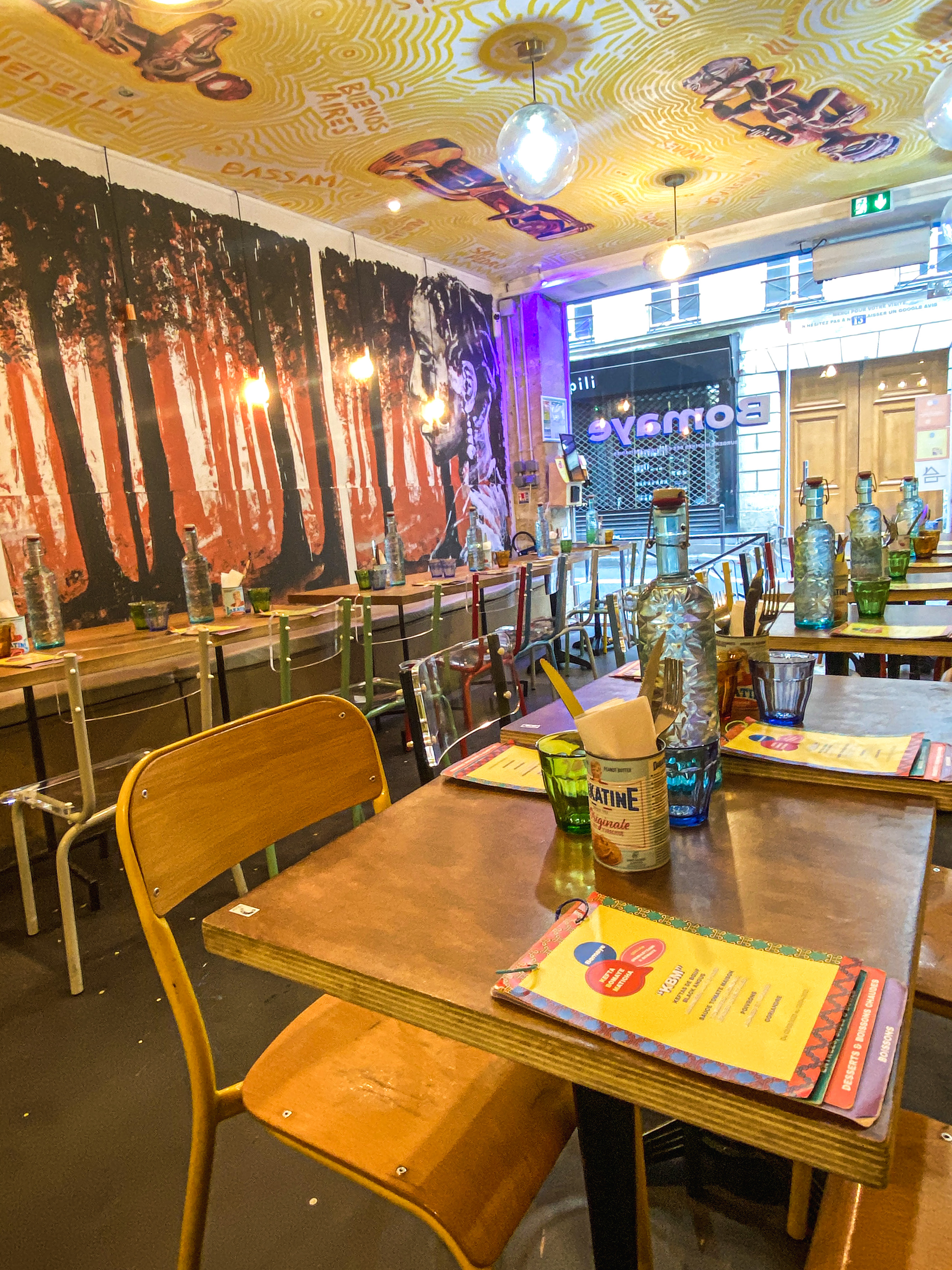 Après des mois à saliver devant l'insta de Bomaye, j'ai enfin pu emmener mes ami.e.s dîner là-bas, et nous avons englouti jusqu'à la dernière miette de nos burgers. L'ambiance et le décor sont chaleureux, le menu bien pensé : quel plaisir de trouver un resto qui propose des plats halal ET une option végé spécialement travaillée !