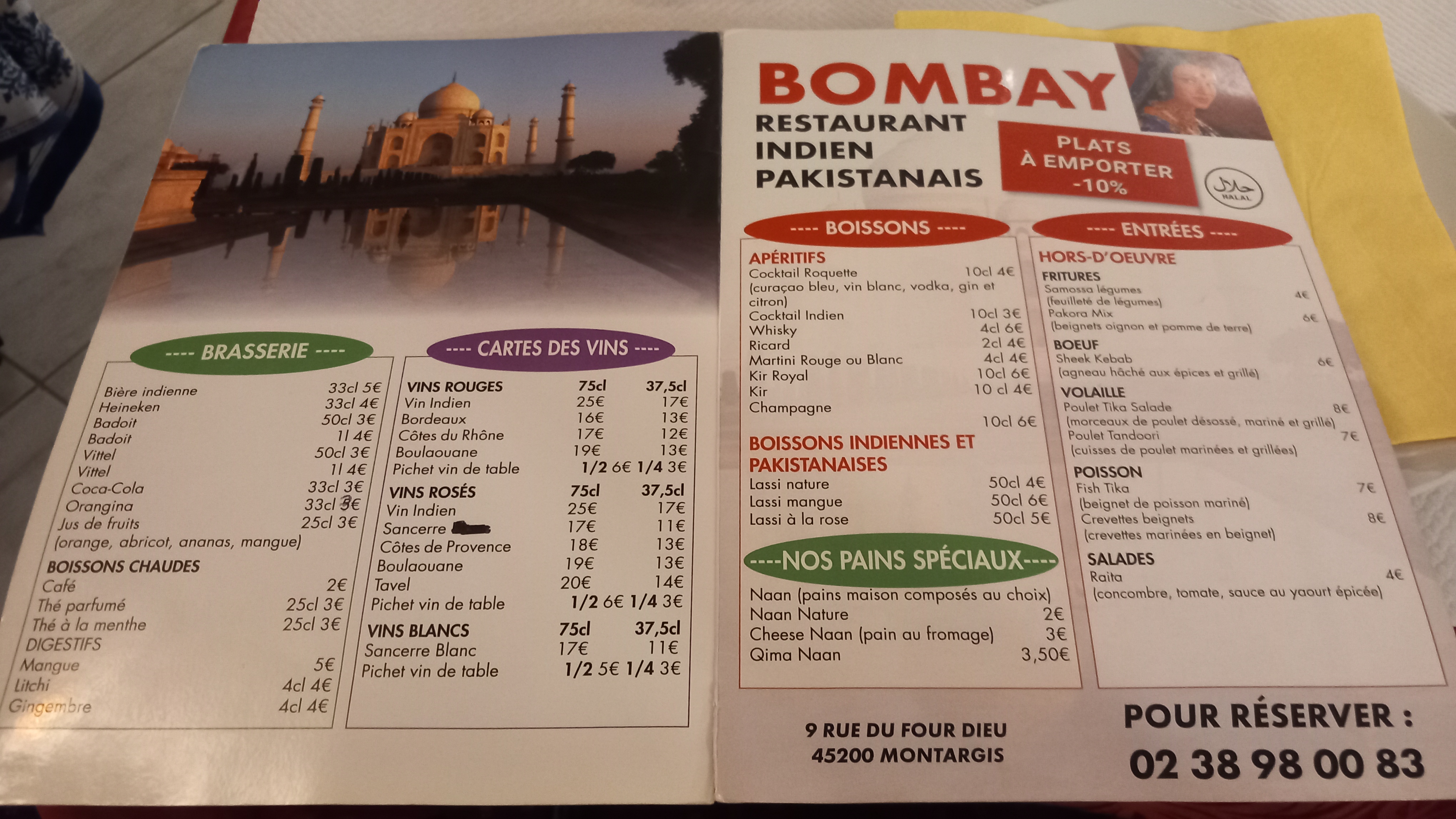 Je recommande le Bombay super ambiance nous avons réserver pour 4 personnes les 4 personnes sont super content du repas je recommande fortement se restaurant avec son accueil chaleureux dans le respect merci encore pour cette expérience je reviendrai !!