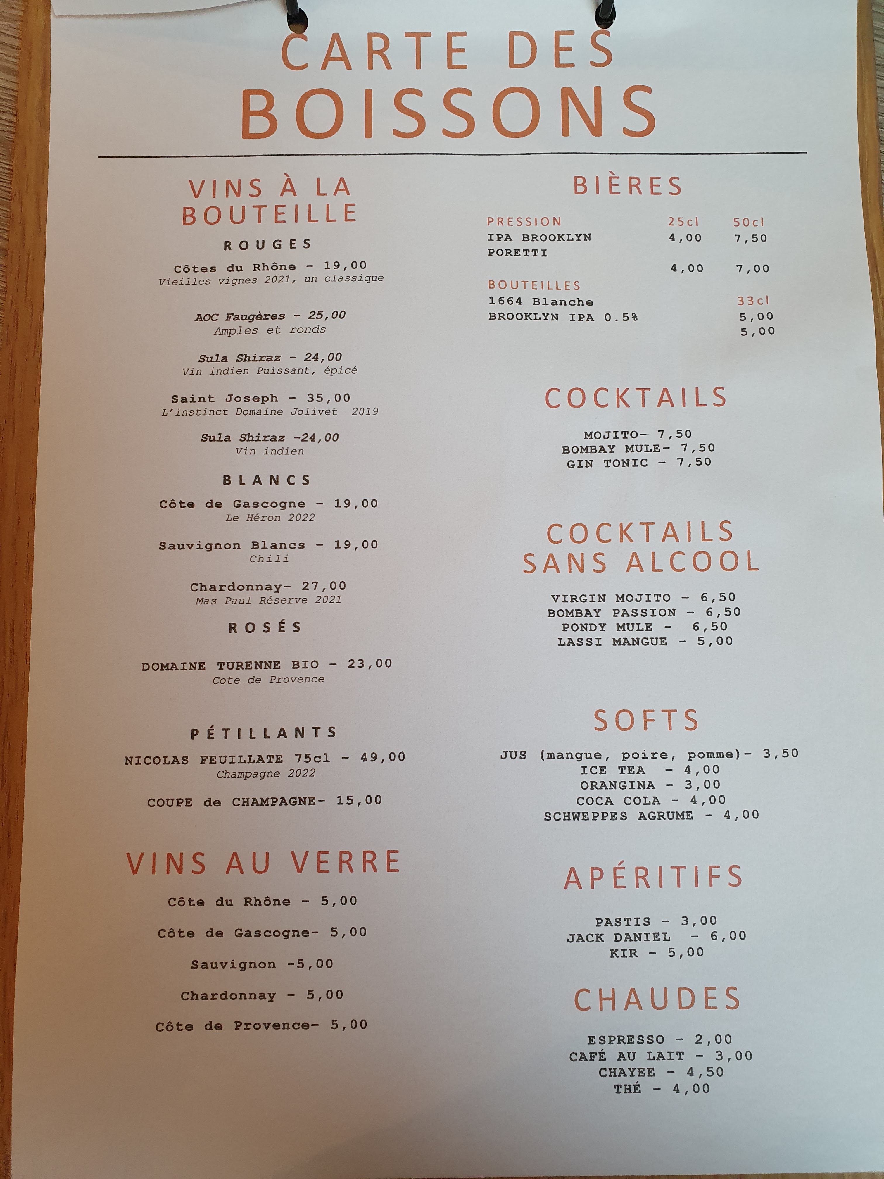 Le petit frère du restaurant le Bombay a ouvert il y a 3 semaines . Que dire mise à part 5 étoiles Petite carte prix plus qu’abordable Une déco top Pour boire un coup manger le midi ou soir et à emporter venez découvrir ce lieu Je reviendrais avec plaisir .