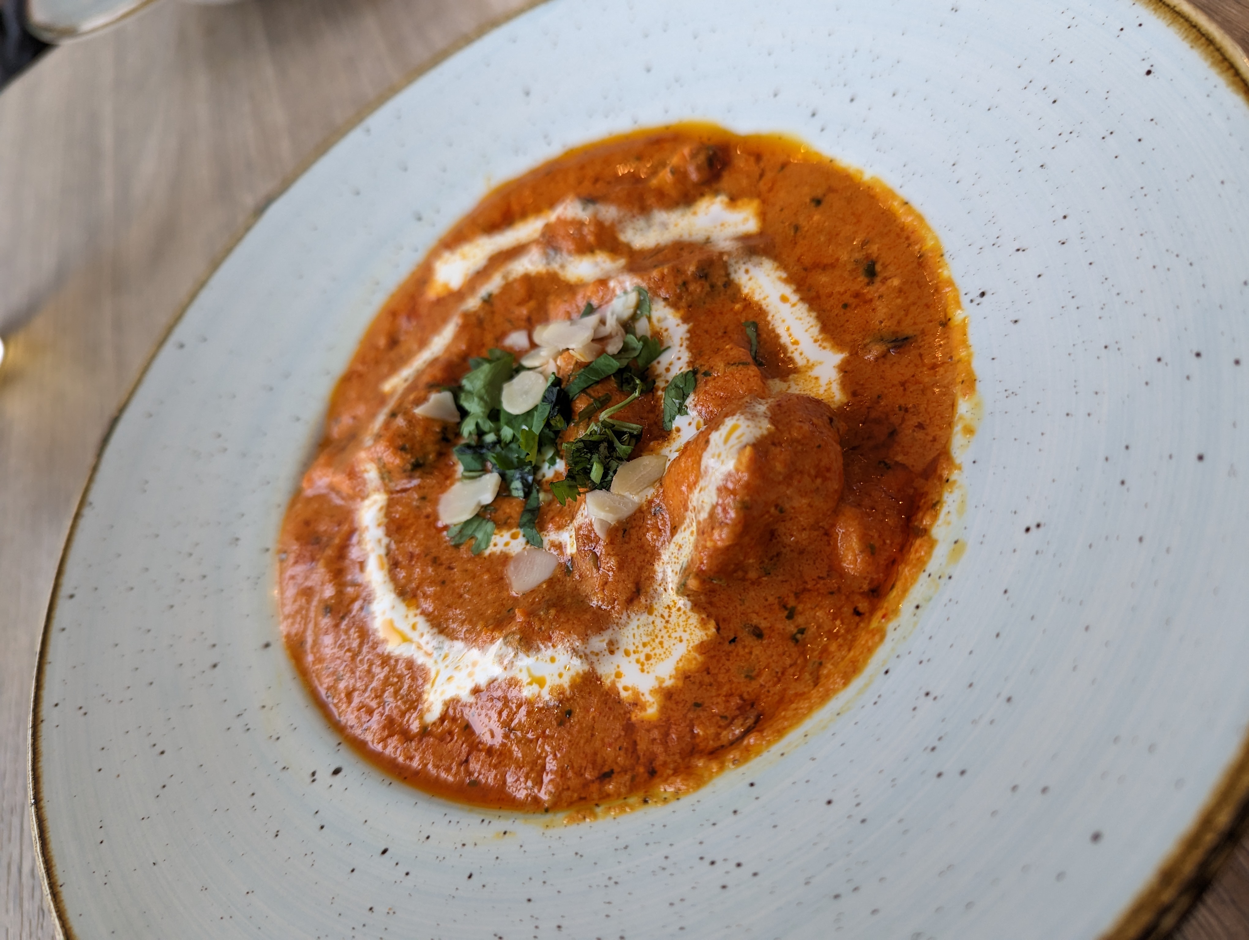 J'y suis allé deux fois parce que la nourriture est délicieuse ! J'ai eu le poulet au beurre et le Poulet Tikka Masala - je ne peux pas dire lequel est le meilleur, ils étaient tous les deux si délicieux et crémeux, les meilleurs que j'ai jamais mangé. Le fromage à l'ail Nan est également un incontournable, il est rempli d'un fromage très crémeux et a un goût incroyable. Le service est bon, leur communication en anglais était bonne. Le restaurant a l'air très neuf, moderne et ouvert, il y a même une fenêtre sur la cuisine, qui semble très propre, on peut voir les chefs cuisiner et sortir les plats. Chaque plat que j'ai vu avait l'air délicieux.