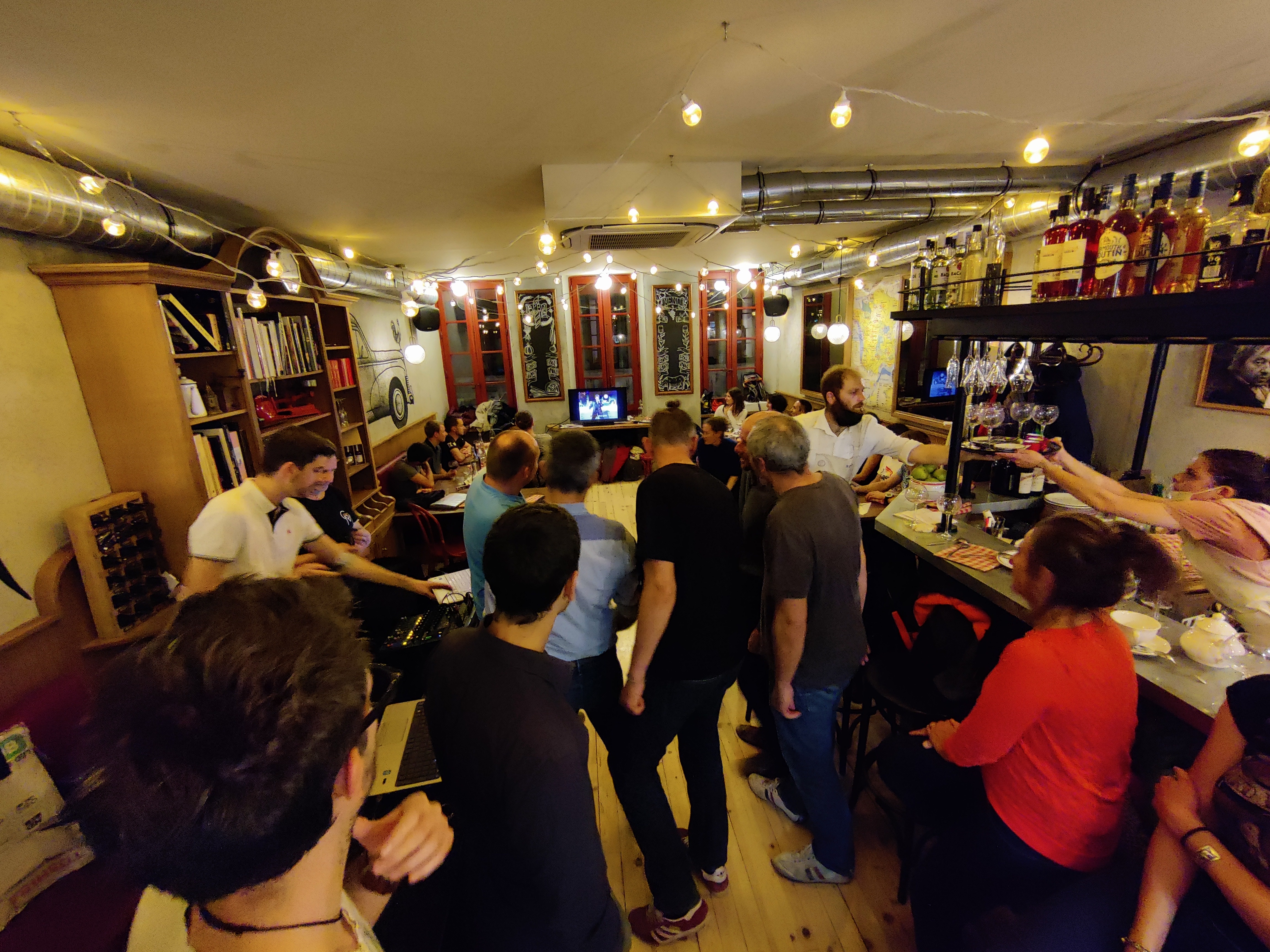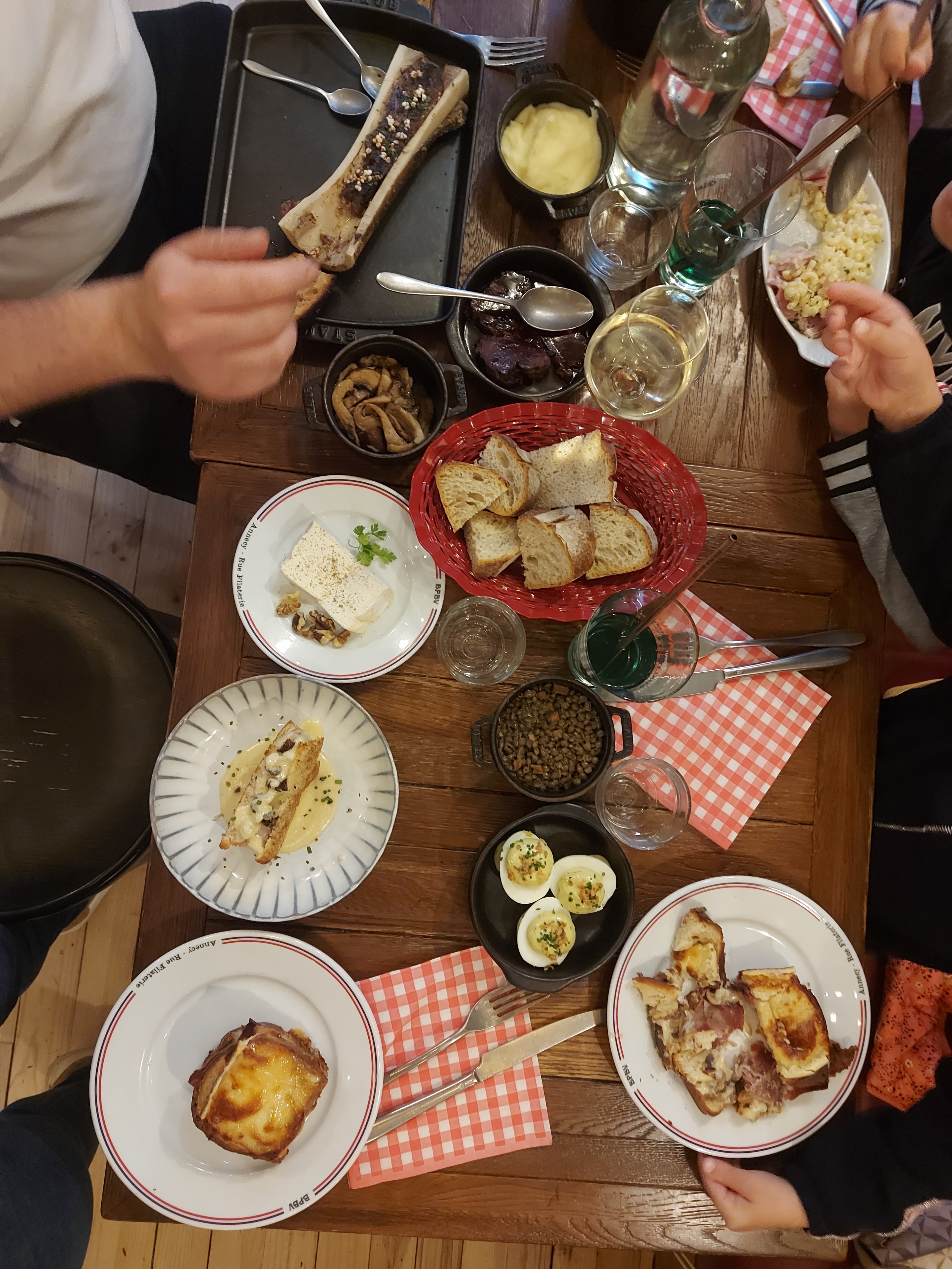 Merci à Aurélien qui nous a trouvé une petite place pour ce midi ! Pleins de bons petits plats français à partager, une ambiance conviviale : tout pour passer un moment :)