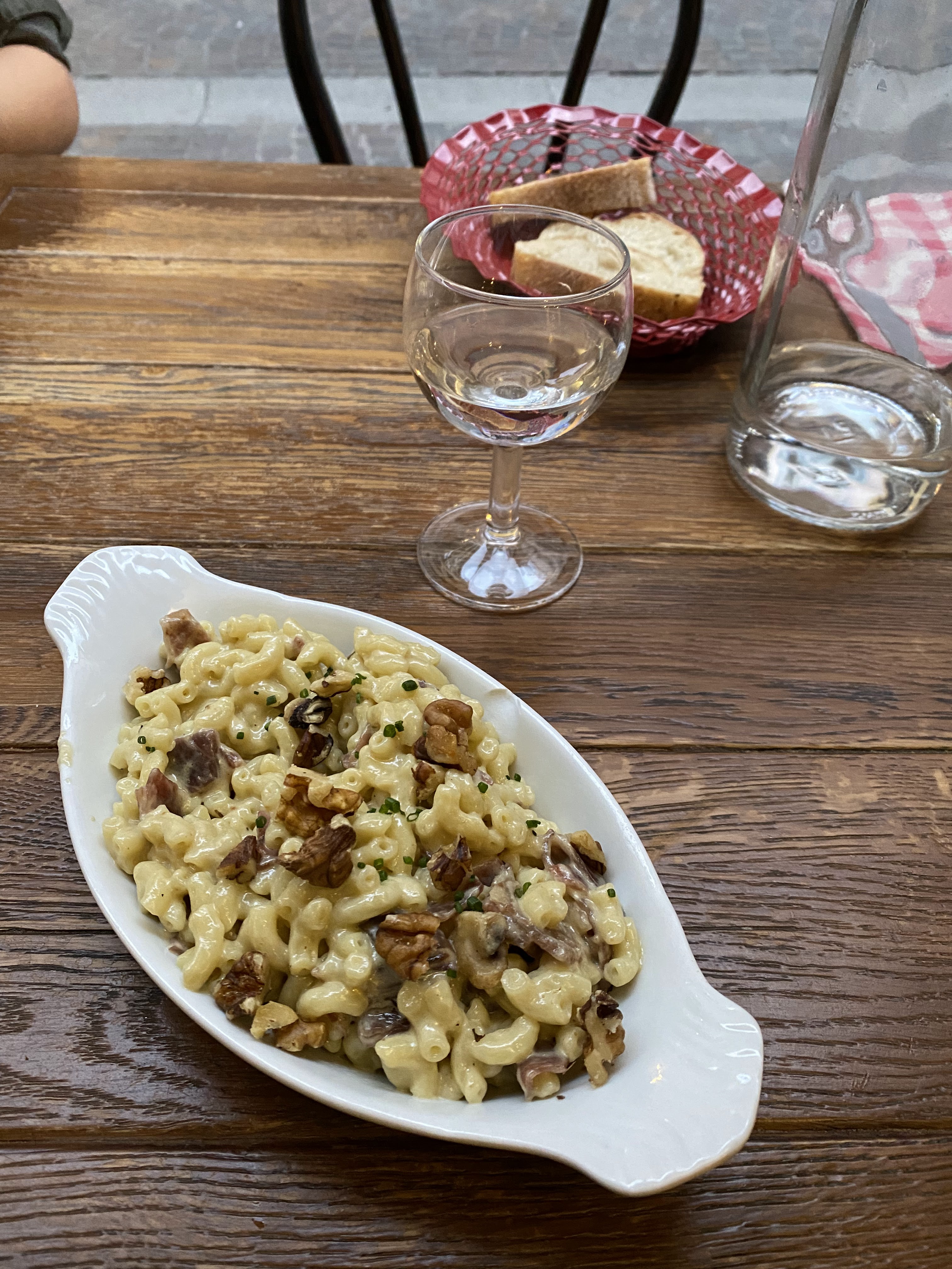 Bon restaurant de plats typique français. Les produits sont bons et de saison, tout est maison et très bien travaillé. Mes deux points négatifs seraient dans la présentation de la table, c'est dommage d'avoir des plats comme ça servis sur une petite table sans nappe. Le prix est pour moi également trop cher, les plats sont bons mais 12€ une portion de coquillettes, c'est un peu haut, surtout quand le serveur conseille de prendre 4 à 5 plats par personne. Mise à part ça, le restaurant est très bien, l'ambiance française est présente et le personnel très gentil. A bon entendeur 🐂