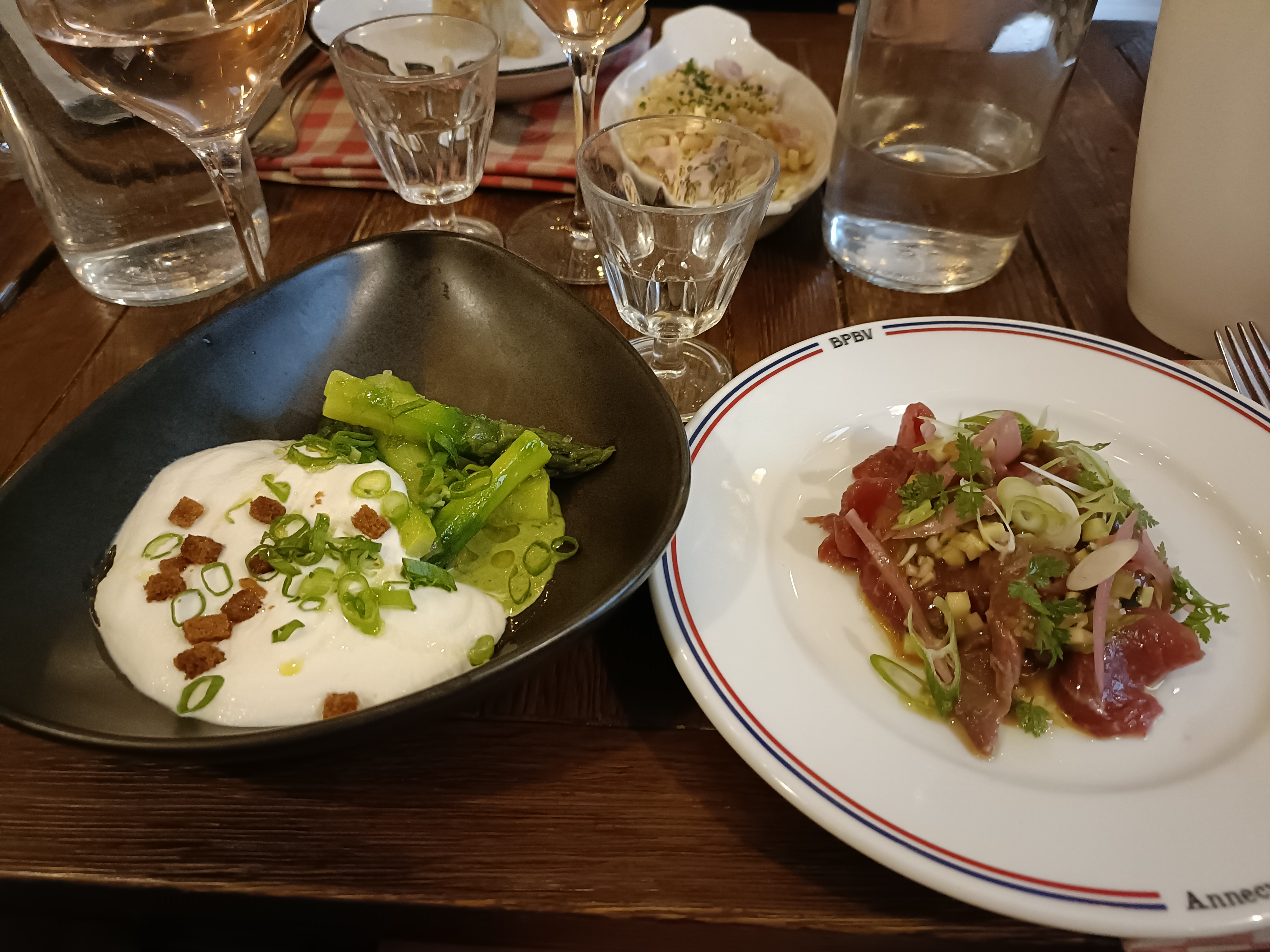 Le concept date de la dernière pandémie et est assez original. C'est quelque chose qui ressemble à un mariage entre les tapas espagnols et la cuisine de brasserie. On peut simplement passer y boire un verre ou y dîner. On y trouve les grands classiques comme l'os à moelle ou le croque monsieur, mais en petite portion. Ou un bouillon aux ravioles de foie gras, délicieux. Ou des magrets de canard excellents. Même le pain est à tomber à la renverse. On peut donc facilement déguster et/ou partager jusqu'à 3 plats différents et d'excellents desserts confectionner par un grand pâtissier d'Annecy. Le tout avec d'excellents vins de la région ou d'autres. Un must quand on passe à Annecy et qu'on aime la bonne cuisine française.