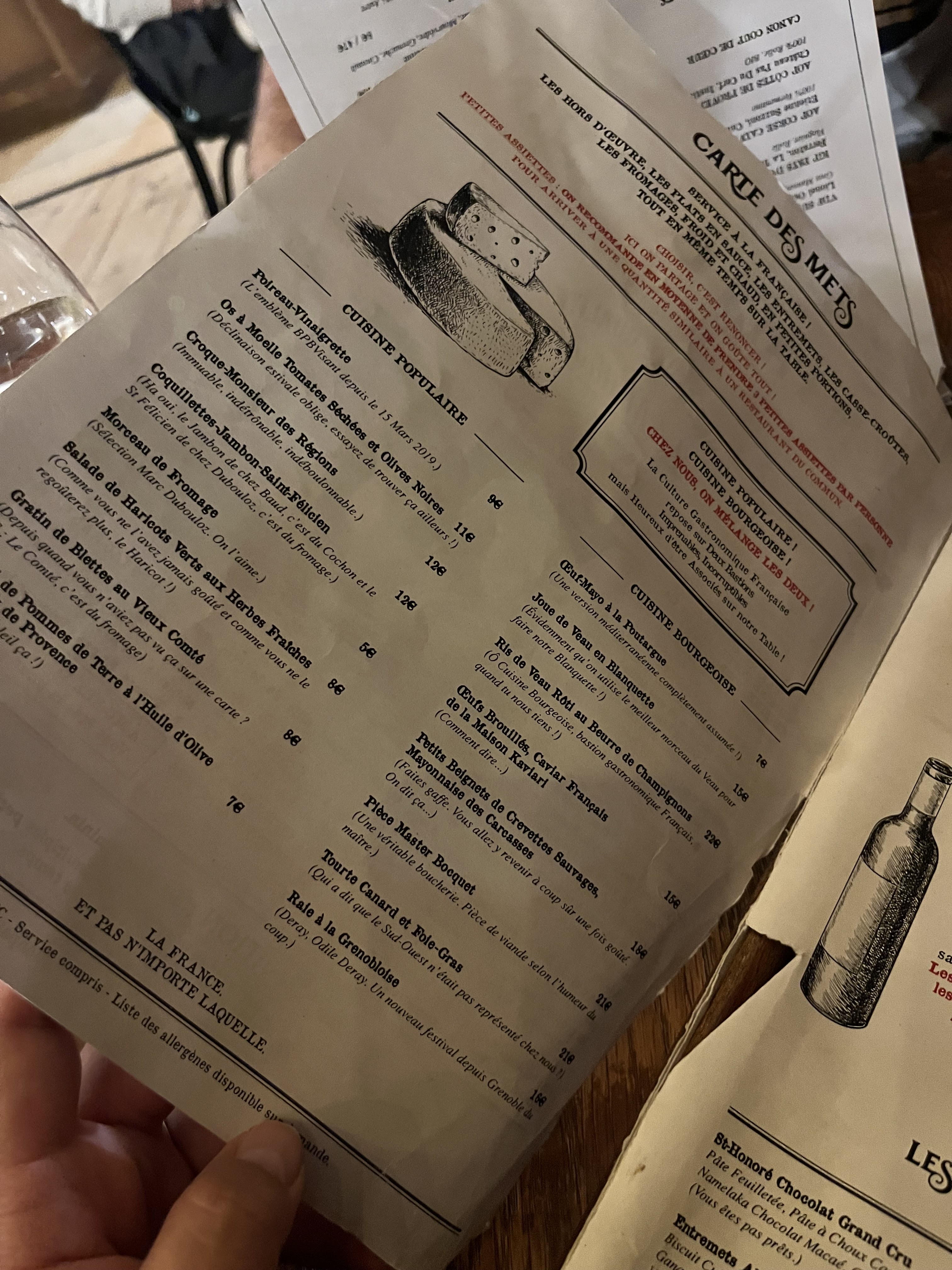 Bistrot à la française, c’est un voyage dans le temps, et ça, c’est excellent! Nous manquons cruellement de cette ambiance aujourd’hui. Alors allez-y ! Cependant, attention aux appétits gargantuesques! Les portions ne sont pas immenses. Nous reviendrons avec plaisir 🇫🇷