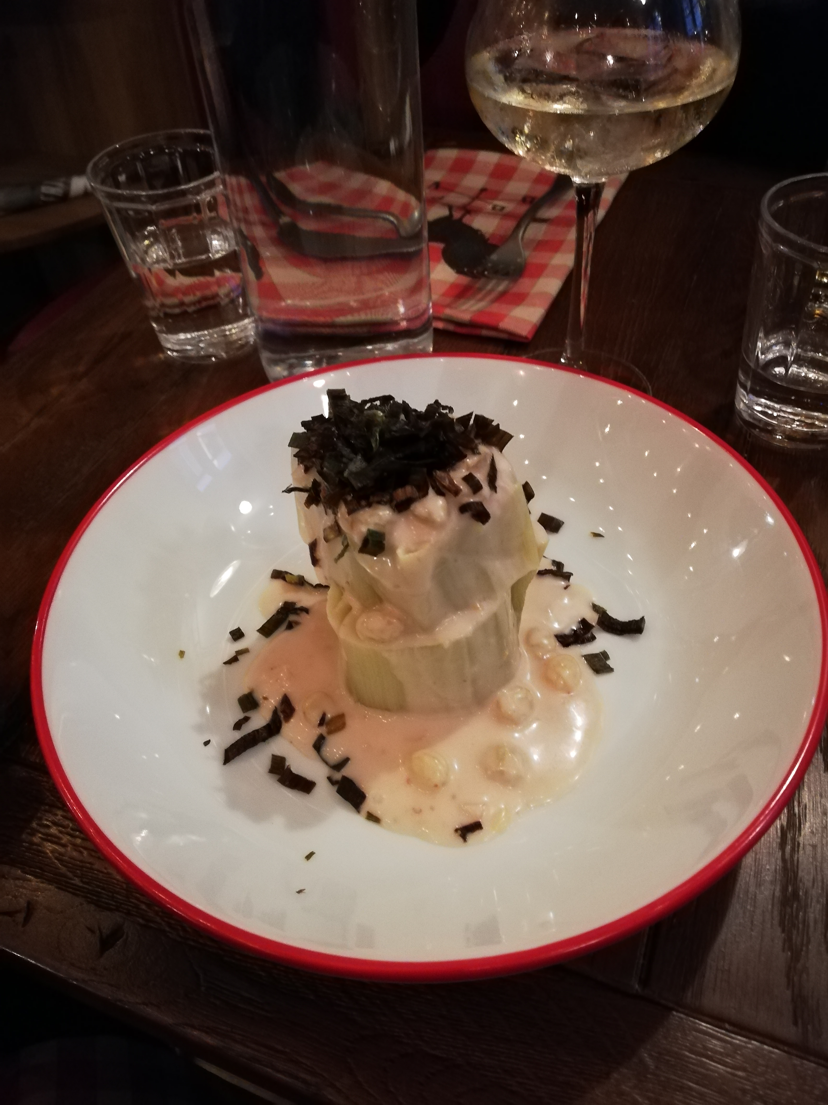 Très bonne adresse , formule du midi à 25€ pour 3 plats régressifs . cordon bleu , galette de patates , diot, tomme chaude et gougettes de poisson à goutter absolument . Super service en marinière . Quantité raisonnable pour un midi . Pain de qualité , carte des vins très conséquente, le nom du resto n’est pas usurpé. Je recommande .
