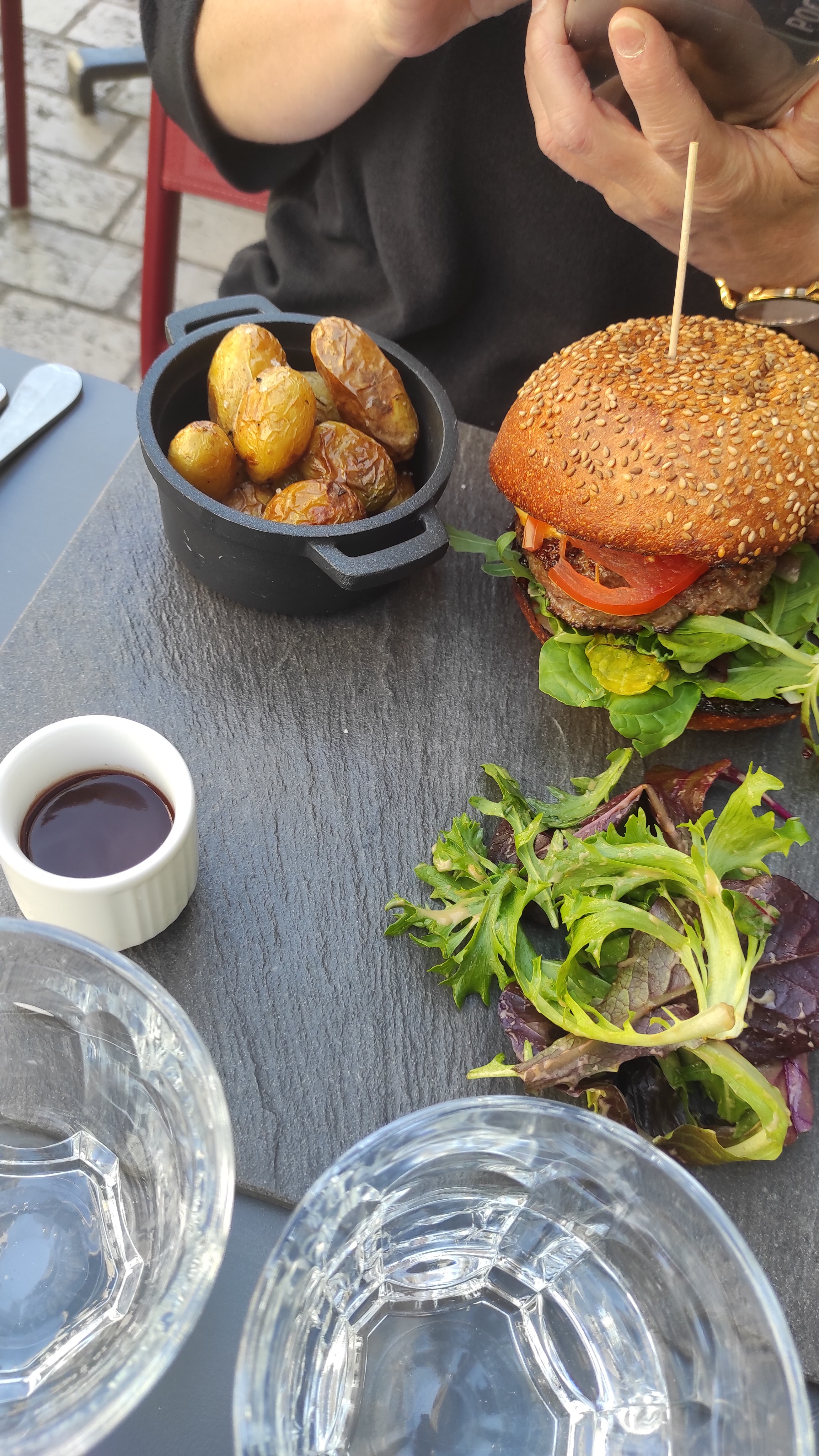 Tout était parfait, sauf la partie service en salle et prise de réservation. En effet, lorsque vous réservez en ligne il n'est pas signalé que les réservations ne se font pas en terrasse et personne ne vous répond (chose que j'avais pourtant précisé dans la demande de réservation) et personne ne vous répond. C'est en arrivant au restaurant que la personne nous indique ne pas prendre de réservation en terrasse. Nous nous sommes donc installés en salle un peu déçus. La décoration cependant est très agréable et cosy, les banquettes sont très confortables et agrémentées de jolis coussins. Tout la partie restauration était parfaite, nous avons choisi un menu Bon Temps à 39€ et un menu burger. Je vous recommande les lamelles frites de seiche qui sont vraiment croustillantes à l'extérieur et bien moelleuse à l'intérieur avec une petite sauce aïoli. La profiterole géante est aussi un super choix de dessert. Le burger au canard quant à lui est juste à tomber! Les tomates fraîches ainsi que la sauce proposée agrémentent parfaitement la viande de canard! Le gros point noir a été l'efficacité du personnel. Aucune excuse à donner sur le fait de l'affluence ou de la pénurie de main d'oeuvre. Je pense qu'il s'agit simplement d'un manque d'organisation et d’efficacité dans le restaurant. Nous avons beaucoup attendu avant de pouvoir commander et le service n'était pas à la hauteur de la cuisine. A titre d'exemple, les personnes assissent à côté de nous ont patienté plus de 25 minutes pour obtenir leur addition!