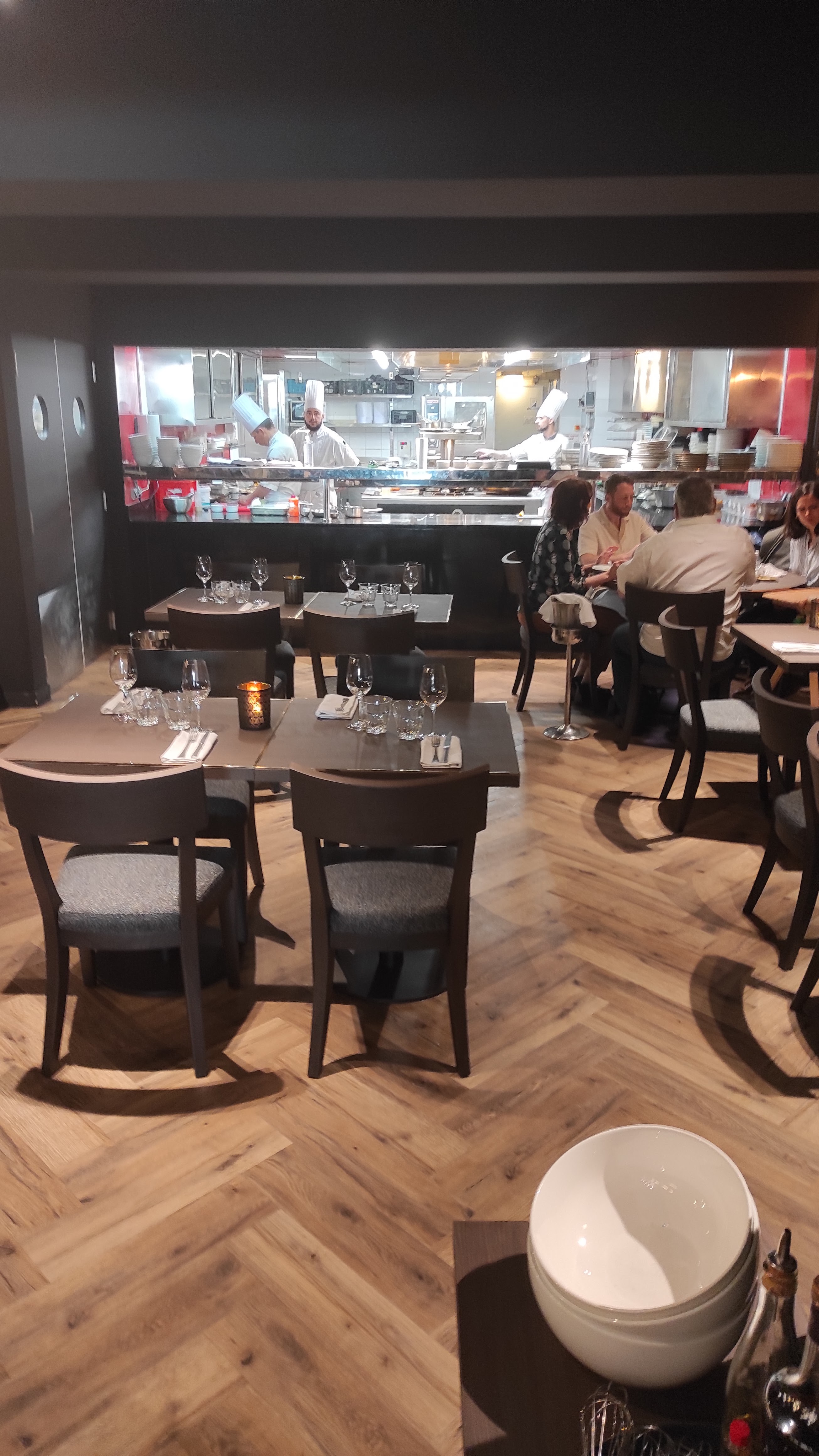 Des plats assez bon Une belle cuisine en toile de fond Des vins parfaitement accordés Des sourires en cuisine et en salle Merci 💌