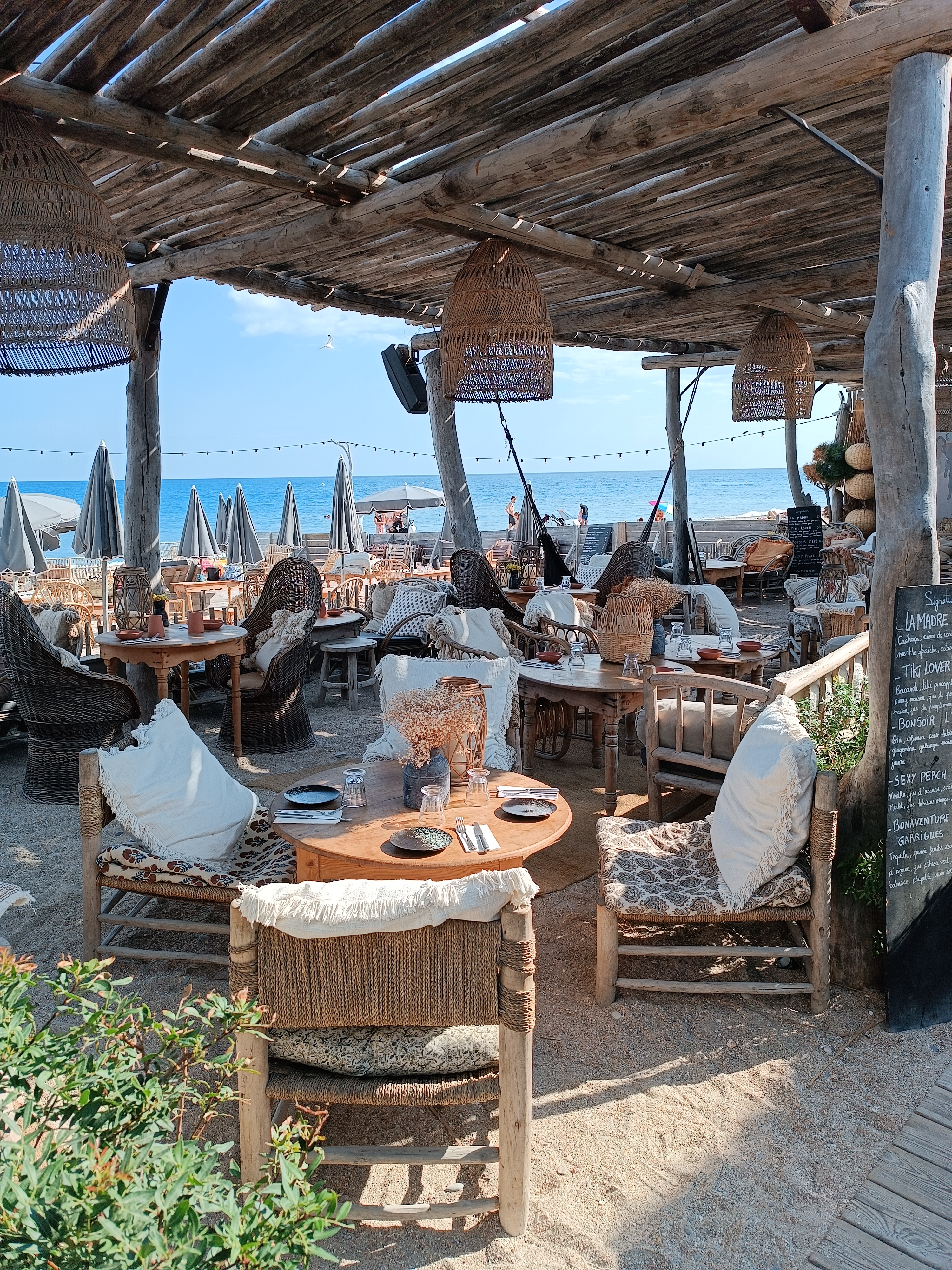 Très content de ma journée... un bon repas à des prix convenables pour une paillote de bord de mer. C pas le carré mer, mais c bon! Les beds étaient confortables et l'accueil chaleureux. Il faux dire qu'on arrivé avant le rush! Des autres commentaires, il semble qu'ils aient un problème de gestion aux heures d'affluence. Pour ma part, je me suis senti accueilli et servi. La déco bohème est top!!!