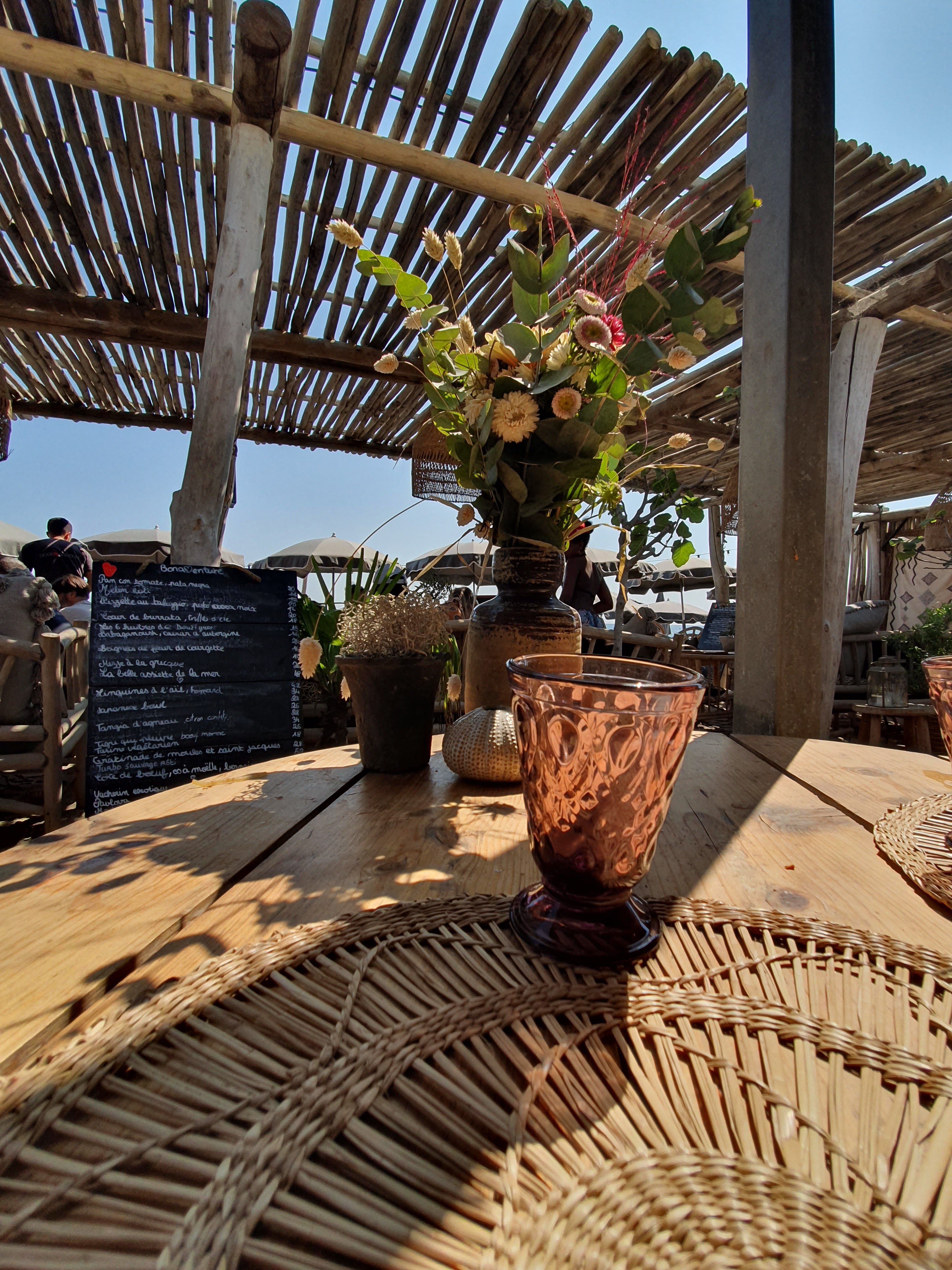 Cadre magique, ambiance boheme. Nourriture un peu cher mais vraiment délicieuse. Nous avions pris un tajine végétarien et des nems a partager. Personnel au petit soin. Je recommande fortement cet endroit. Pour y accéder, parking payant (5euros peu importe le temps que l'on reste donc autant y rester un moment et de programmer une petite balade sur la plage ou une aprem bronzette)