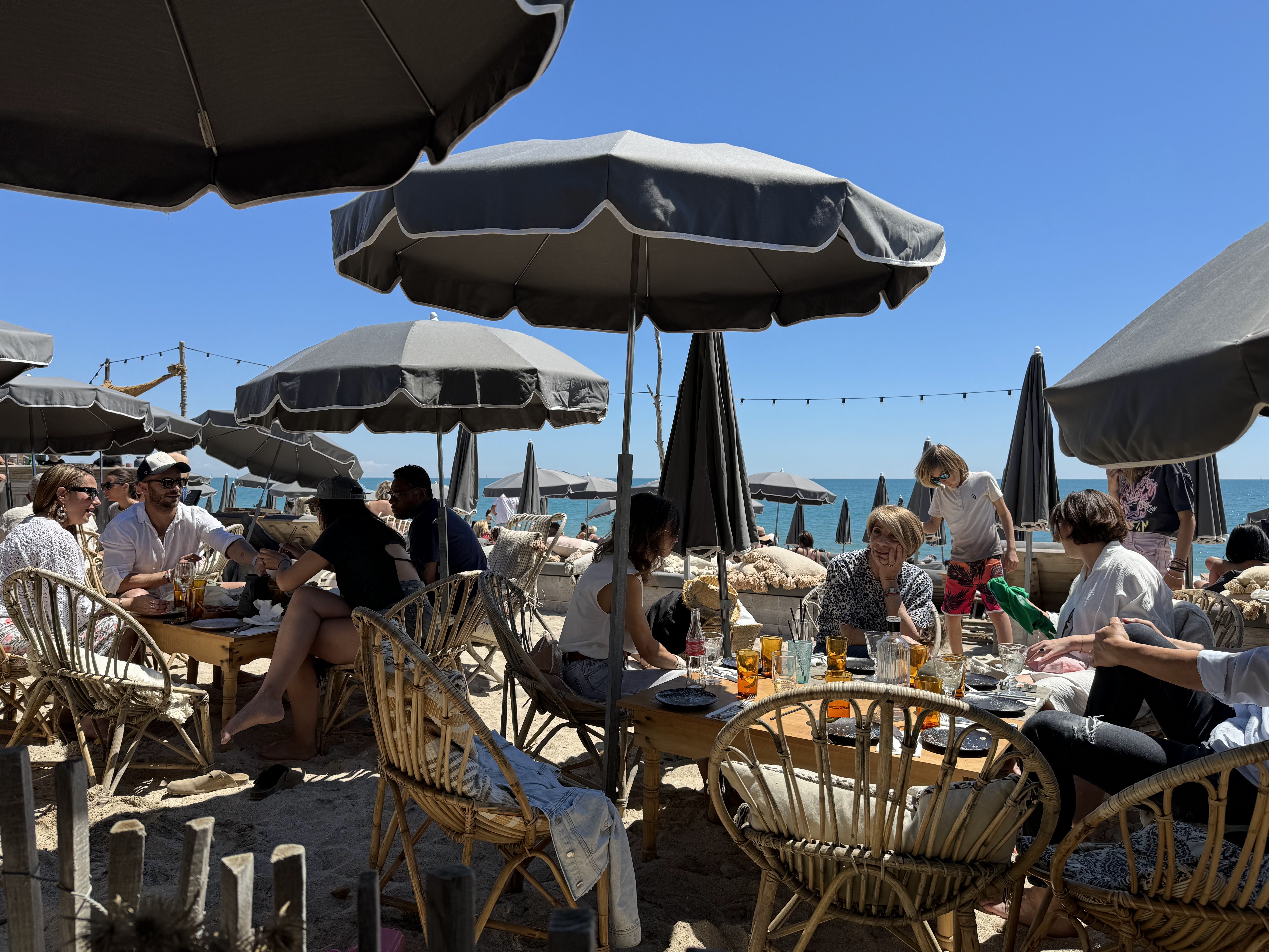 J'y suis allé 2 jours de suite sur des transats de première ligne. L'emplacement et la vue sont ce qu'il y a de mieux dans cet endroit. Bien que légèrement cher, la nourriture est plutôt bonne et bien servie. Le service est lent mais c'est probablement pour correspondre à l'ambiance de l'ensemble qui est « bobo chic ». Il y a BEAUCOUP de personnel, même si certains d’entre eux ne semblent pas s’en soucier et préfèrent discuter et faire des blagues. Bravo à Gautier et Lisa qui ont été super actifs pour notre bien-être. Si vous êtes à court d’argent n’y allez pas ou vous repartirez frustré, sinon si vous êtes cool et pas trop exigeant, vous devriez passer un bon moment dans une superbe salle. Le grand patron pourrait sourire un peu plus. Dans l'ensemble, nous avons passé un très bon moment.