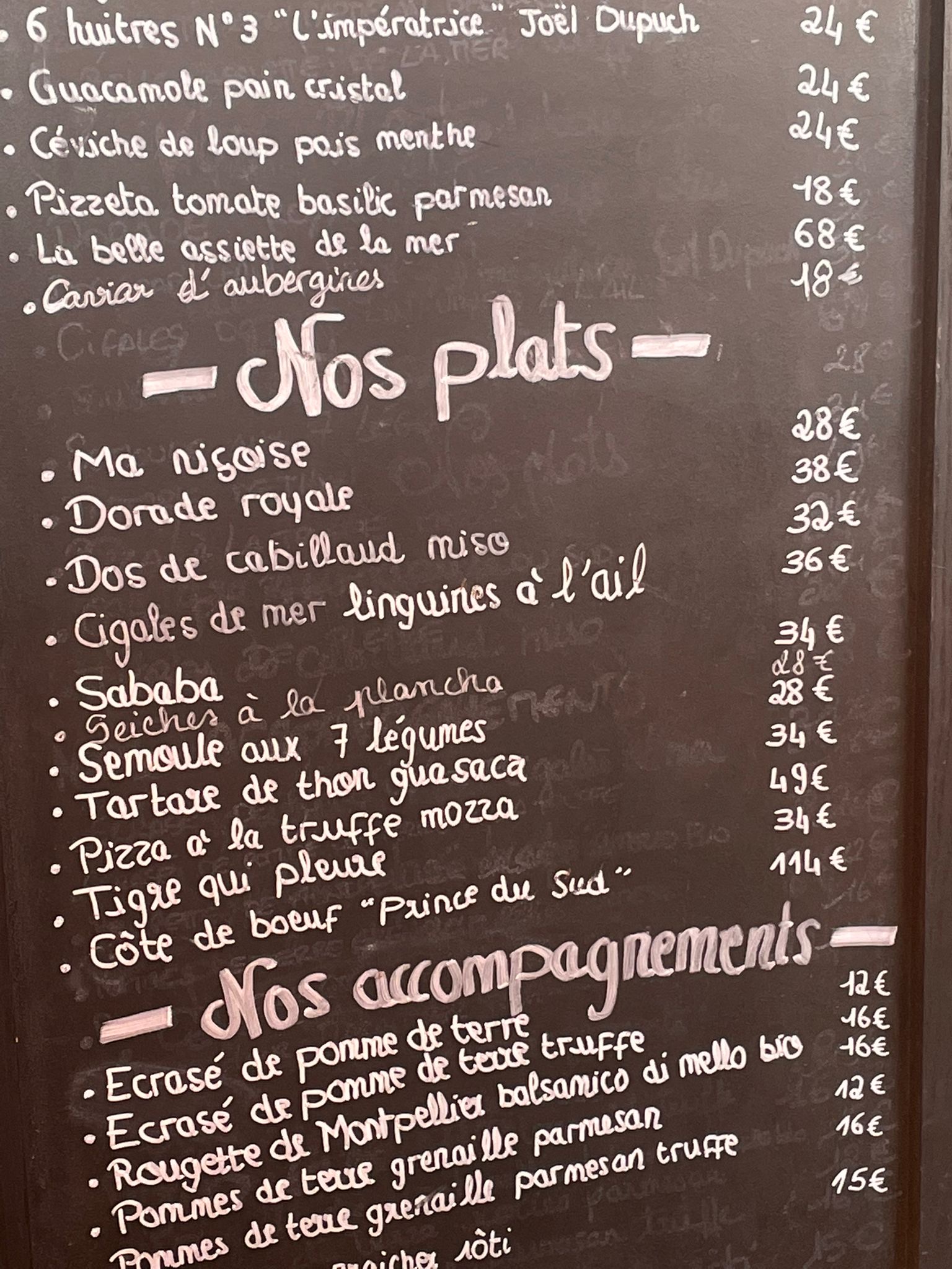 Une équipe charmante et qui travaille visiblement dans la bonne humeur, l’endroit est très joli, et surtout, c’était très bon. Un loup et ses légumes grillés délicieux, un tigre très réussi et des cigales de mer goûteuses. Les desserts formats à partager sont très généreux. L’addition est parfaitement justifiée au vu de la qualité des plats, du service et du cadre.