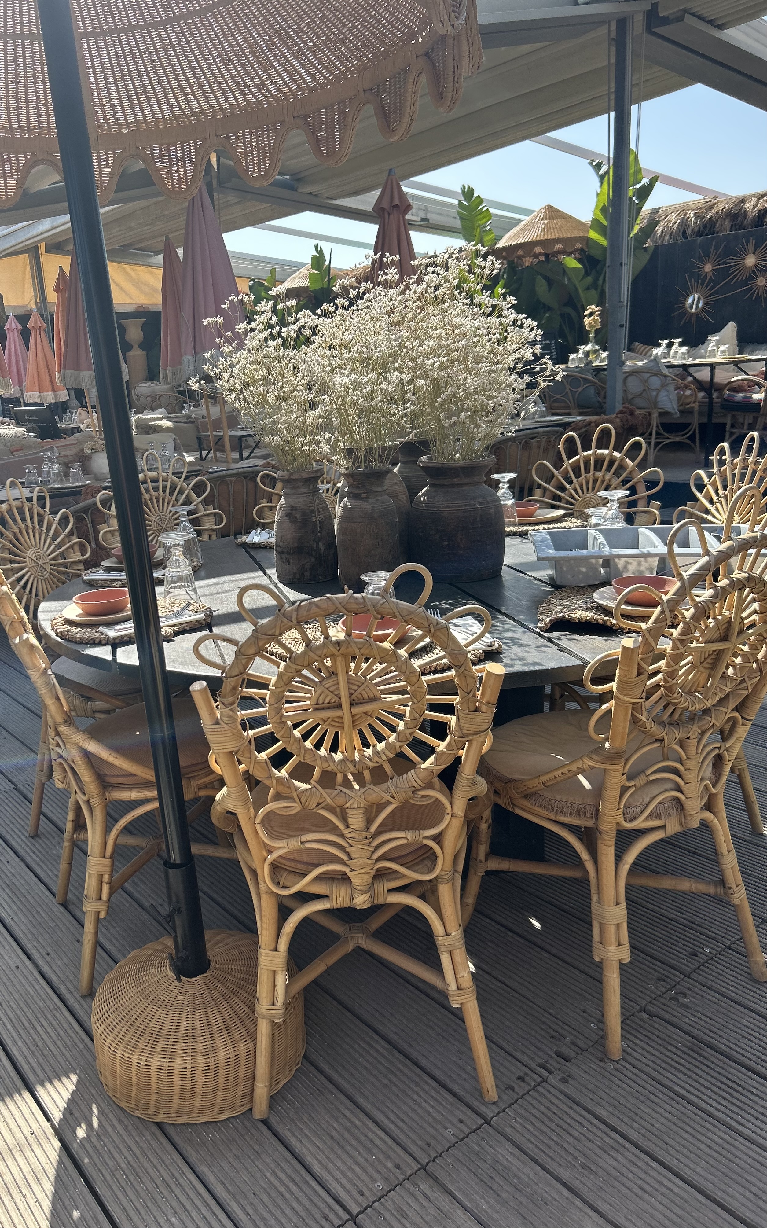 Magnifique endroit , la déco est magnifique les serveurs sont très pro et disponible . Les plats sont délicieux on a passer une très belle journée, petit commentaire négatif la bouteille d’eau à 8€50! Car pas de carafe d’eau servie sous c’est grosse chaleur je trouve que le prix est très cher