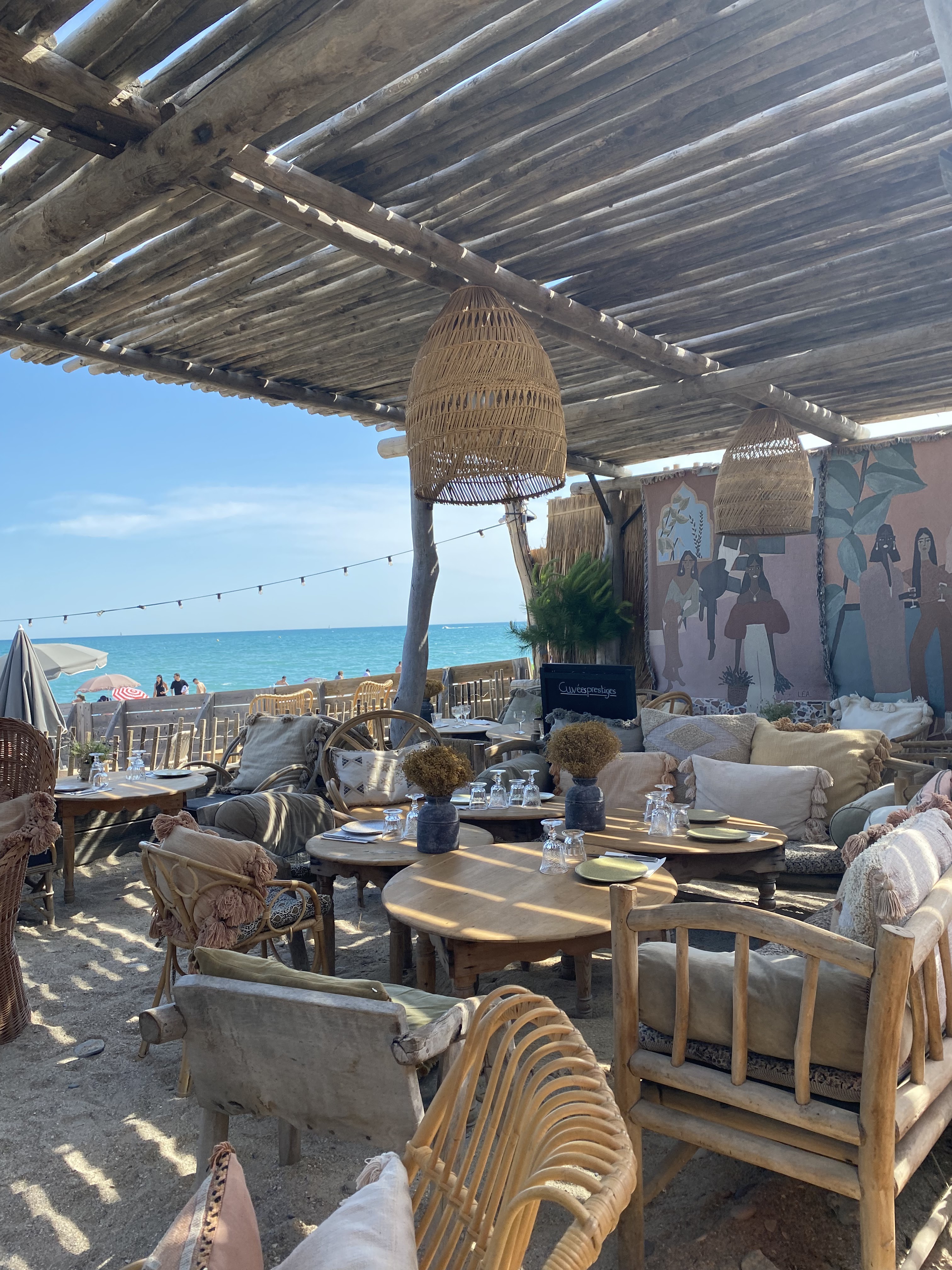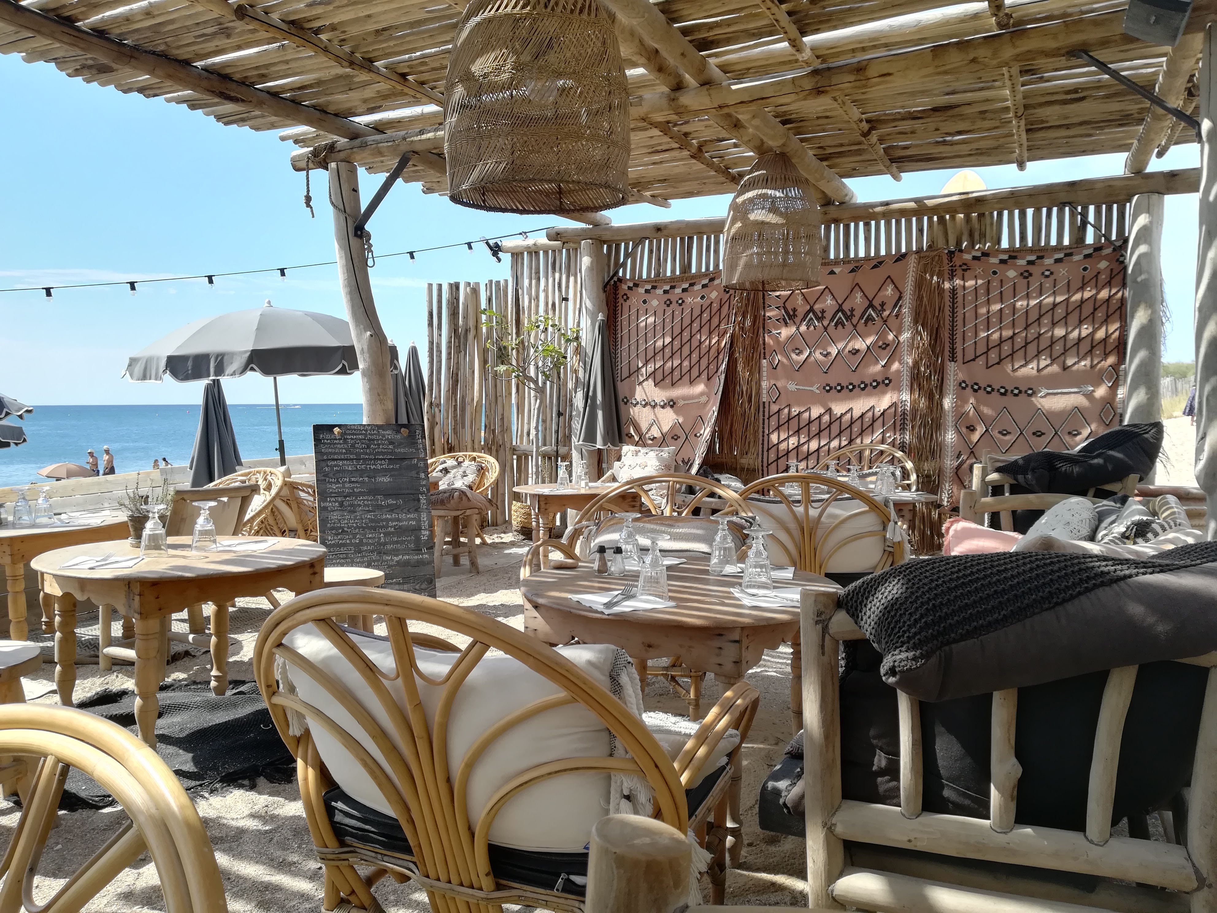 Paillote recommandée par une amie montpelliéraine, très sympa. La décoration a été choisie avec goût pour une ambiance plage bohème dans laquelle on se sent bien. Le personnel est au petit soin, pour nous faire passer un vrai moment de détente. Quant au déjeuner, raffiné et copieux, tout ce qu’on adore.